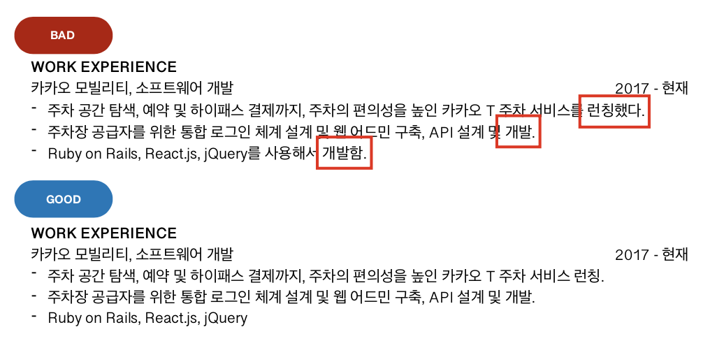 이력서 내 같은 의미를 여러 단어로 표현하고 있지는 않은지 확인해보자.