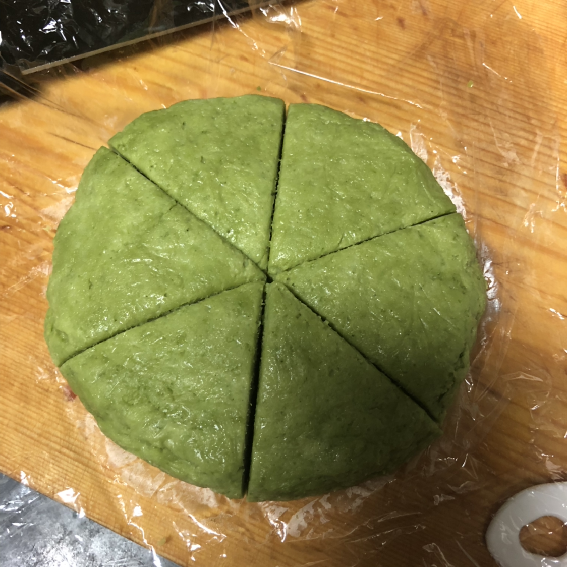 유산지를 깔고 스콘 반죽을 올려준 후,