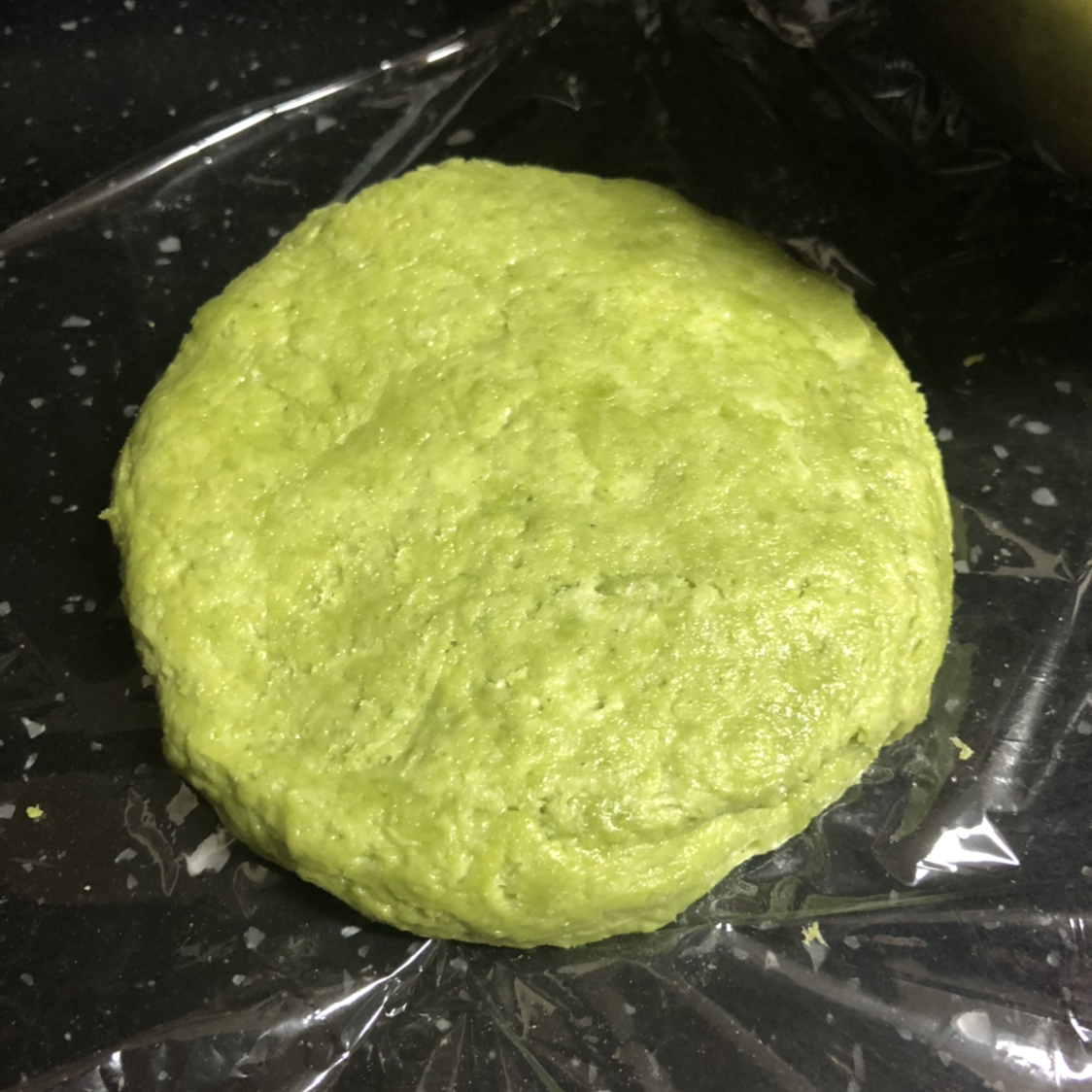생크림을 넣고 우물 정자를 그리며 주걱으로 섞다가 손으로 한 덩어리로 만들어준다.