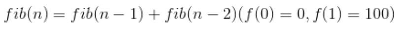 초깃값이 주어지면 그 값을 토대로 기하급수적으로 증가합니다. fib(n)의 n은 내가 잔디를 심지 않은 일 수예요. 예를 들어 1월 1일 안 심음, 1월 2일 안 심음, 1월 3일 심음, 1월 4일 안 심음이라면, 1월 1일에 내야 할 벌금액은 f(1)인 100원 , 1월 2일에 내야 할 벌금액은 f(2)인 100원, 1월 4일에 내야 할 벌금액은 200원이 되죠.