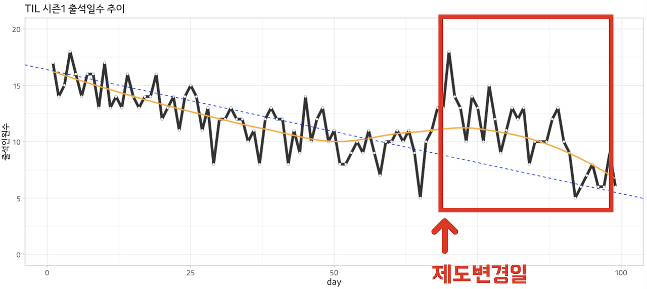 그래도 트렌드(노란색 선)로 봤을 때에는 제도가 어느 정도 효과가 있었음을 보여주네요!