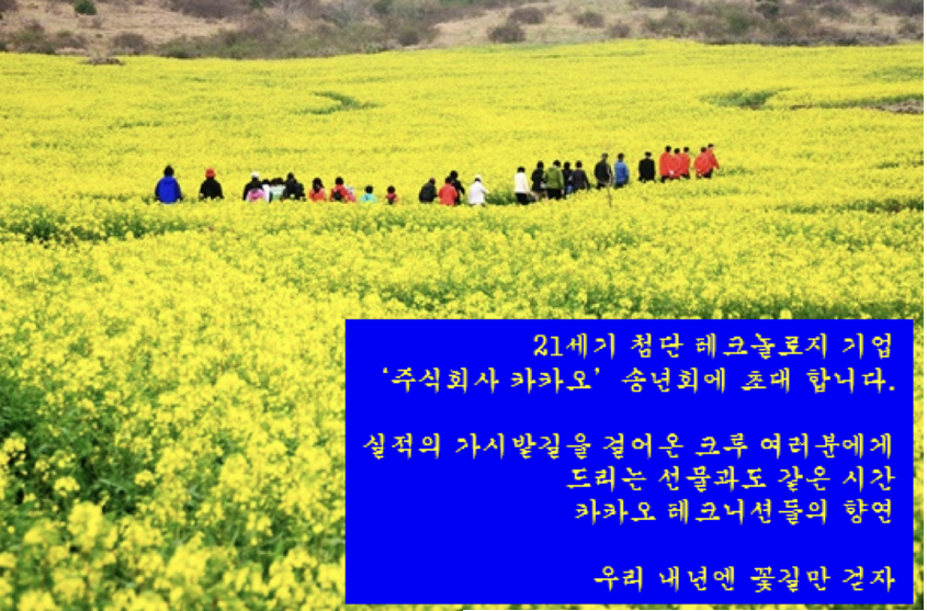 10월 즈음이었을까? 연말이라기엔, 혹은 '송년회'라는 단어가 나오기엔 살짝 이른 시기에, 카카오 아지트(전사 커뮤니케이션의 장)에는 공지가 하나 떴다.