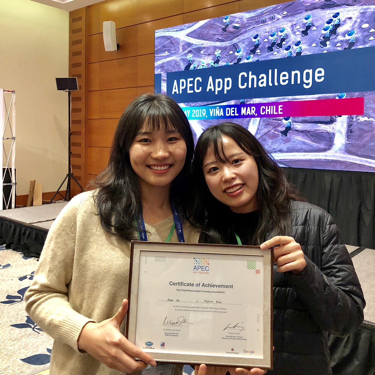 칠레로 가는 비행기 안에서도, 공항 안에서도 코드를 짜며 갔다. 웹사이트를 만들어야 하는데, 비행기 안에서는 인터넷이 안되기에 document 같은 것은 찾지도 못하고 노트패드에 코딩하듯이 코드를 작성했다. 칠레 공항에 도착하니 한 직원이 팻말을 들고 우리를 기다리고 있었다. 우리 신원이 확인되자 APEC 목걸이를 하나씩 주더니 외교관 프리패스 라인으로 데려가 입국 심사를 누구보다 빠르게 마치게 해 줬다. 입국 심사대를 나오니 경호원들이 붙어서 우리를 미니 밴까지 안내해줬고, 우리는 연예인이 된 것 같다며 호호거리면서 Valparaíso로 가는 밴에 몸을 실었다. 도착해서 밤새 또 코딩하고 발표자료를 만들었다.