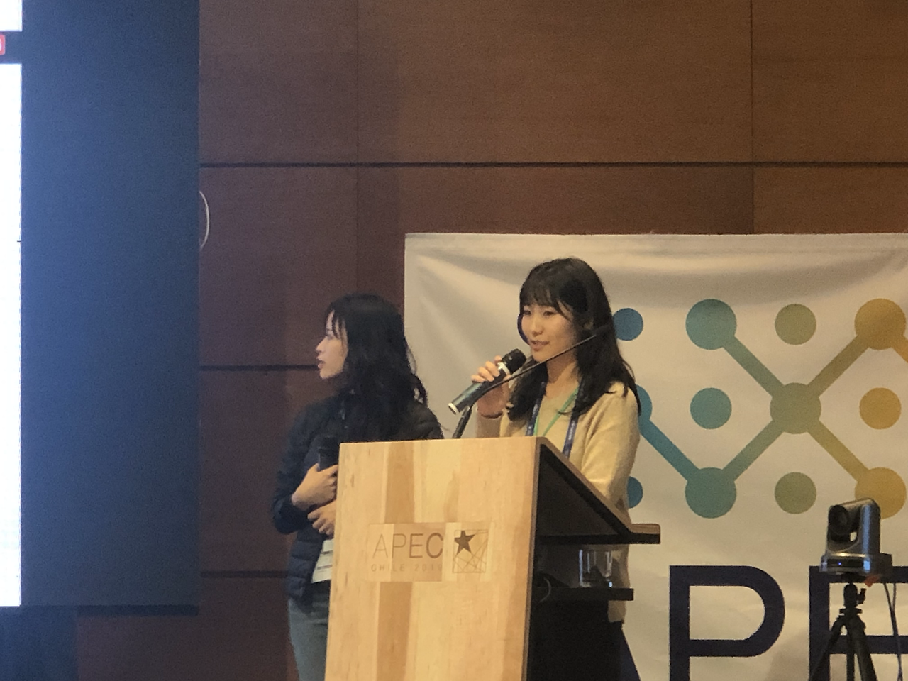 APEC 참가국 장관들 앞에서 발표를 하려니 매우 긴장되었다. 다행히 우리 둘은 같이 무대에 올라갔기 때문에 긴장이 덜 되었다. 무슨 말을 했는지 기억도 안 날 만큼 긴장한 채로 10분이 지났고, 발표가 끝났다.