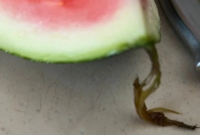 그 정체가 뭔가 싶었는데 썩어서 문들어져 있던 수박 꼭지의 끝 부분이었다.