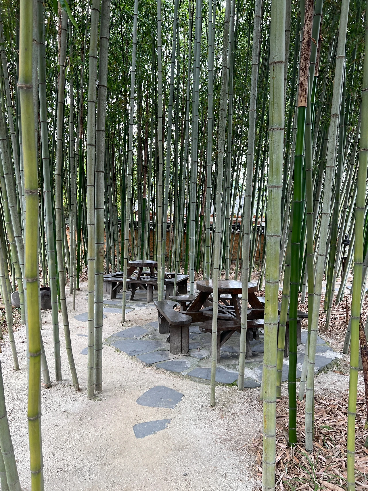 '지금 이 꽃자리'라는 카페도 있었다. 대나무에 둘러싸인 테이블이 인상적인 곳.