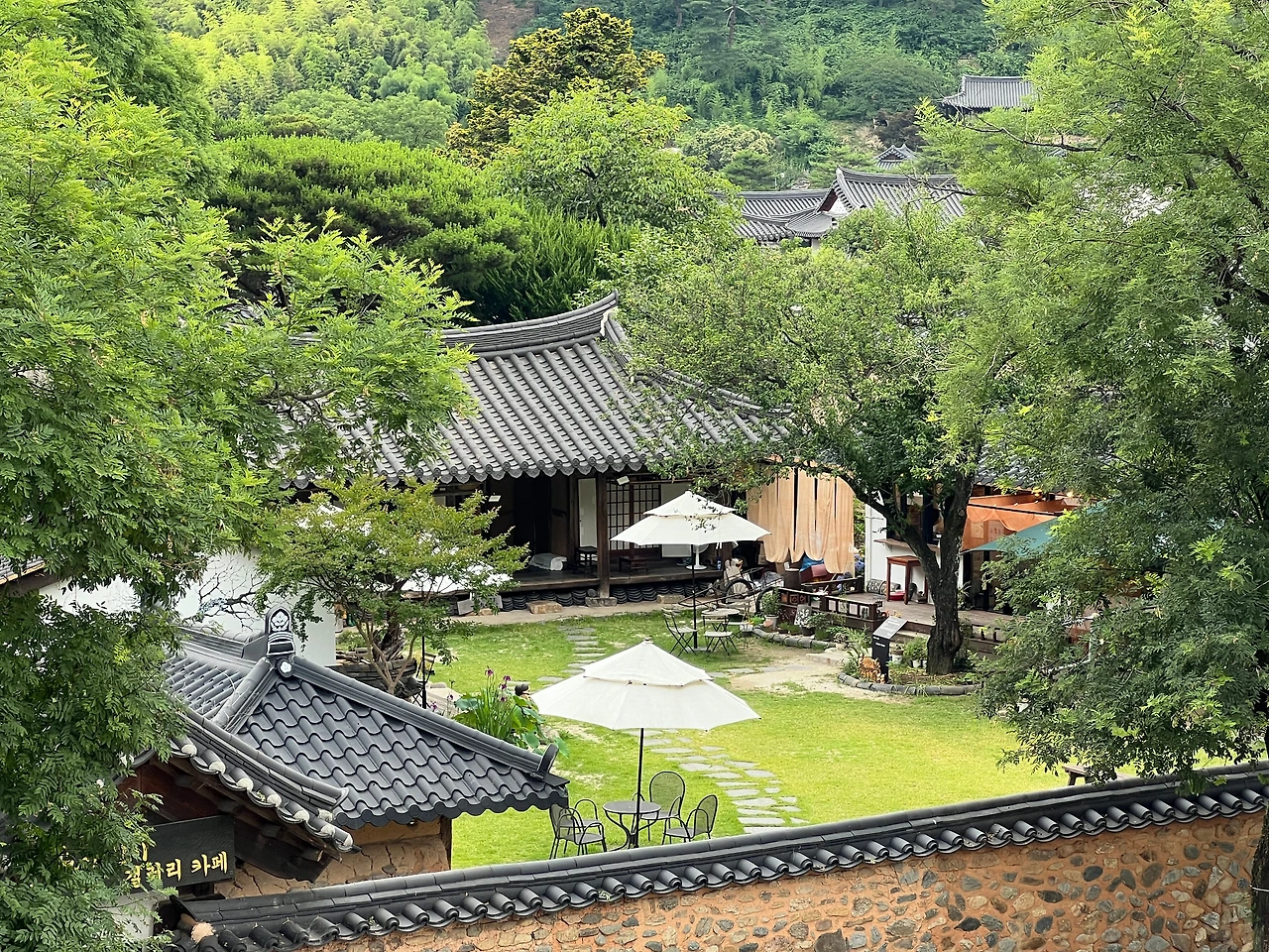 한쪽에 수국이 피었고 역시 한옥의 아름다움을 잘 보여주는 곳이다.