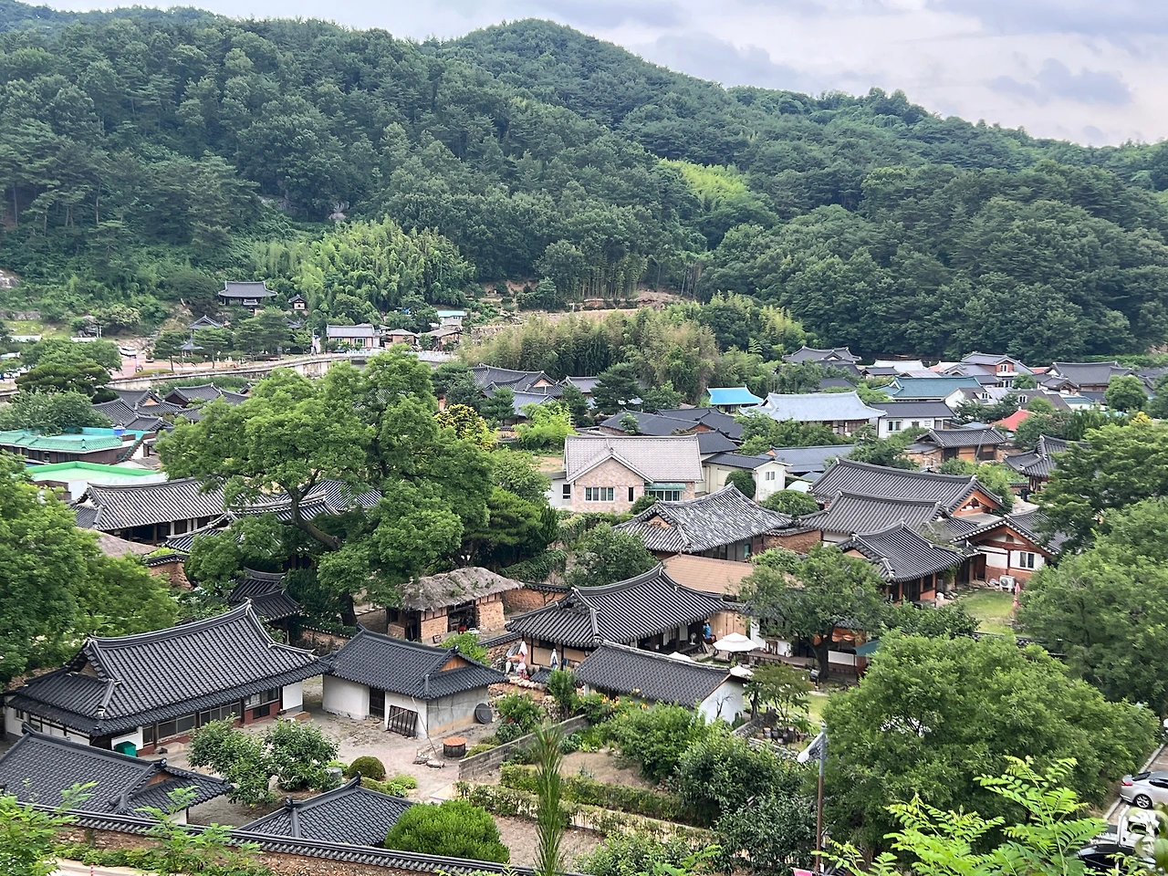 정자에 오르면 남사예담촌이 보인다. 매일 고층건물만 보다가 땅과 한 몸이 된 듯 나무 속에 가려져 있는 한옥 고택들이 너무 이쁘다. 내 마음까지 정갈해지는 듯~~