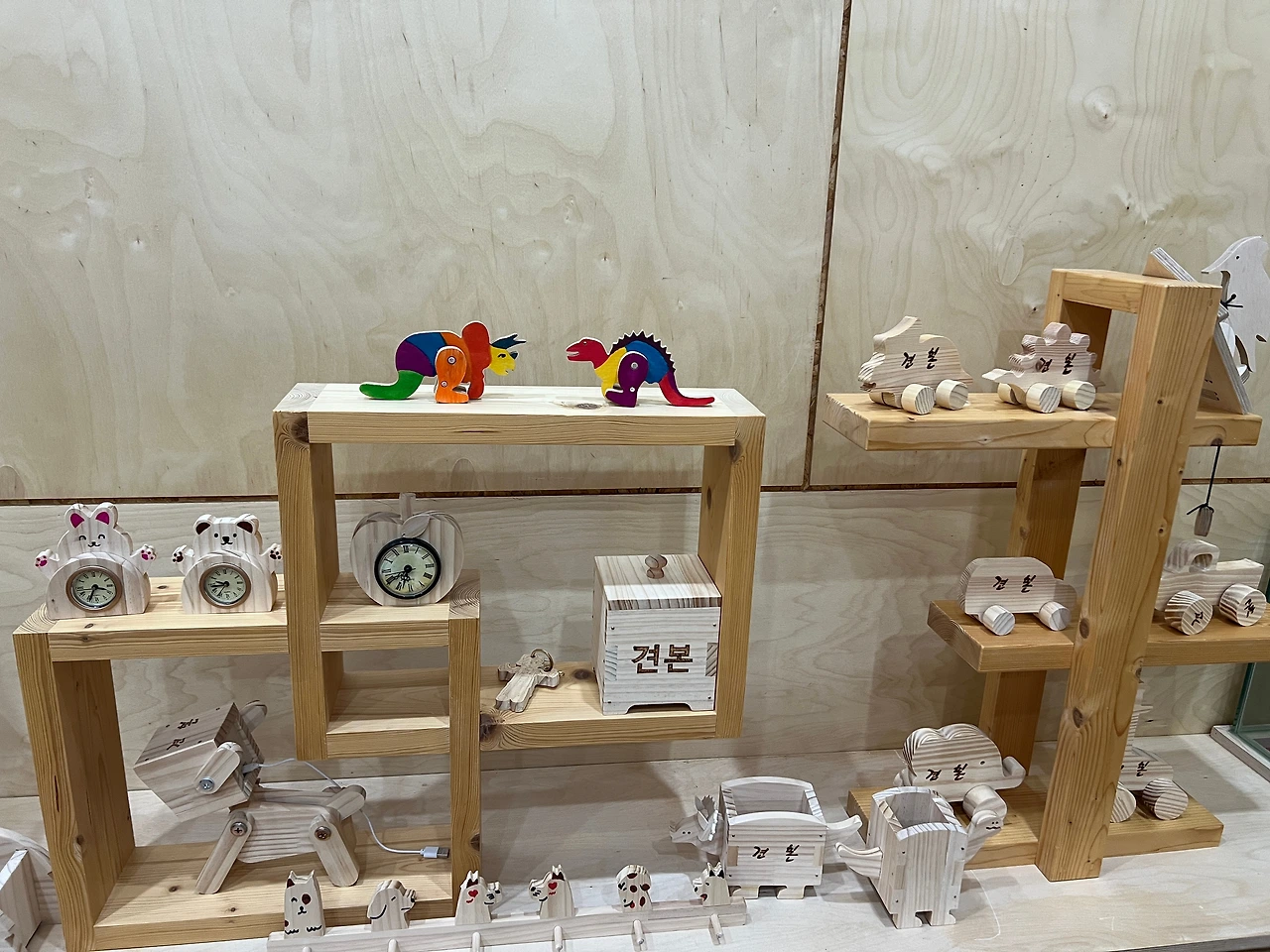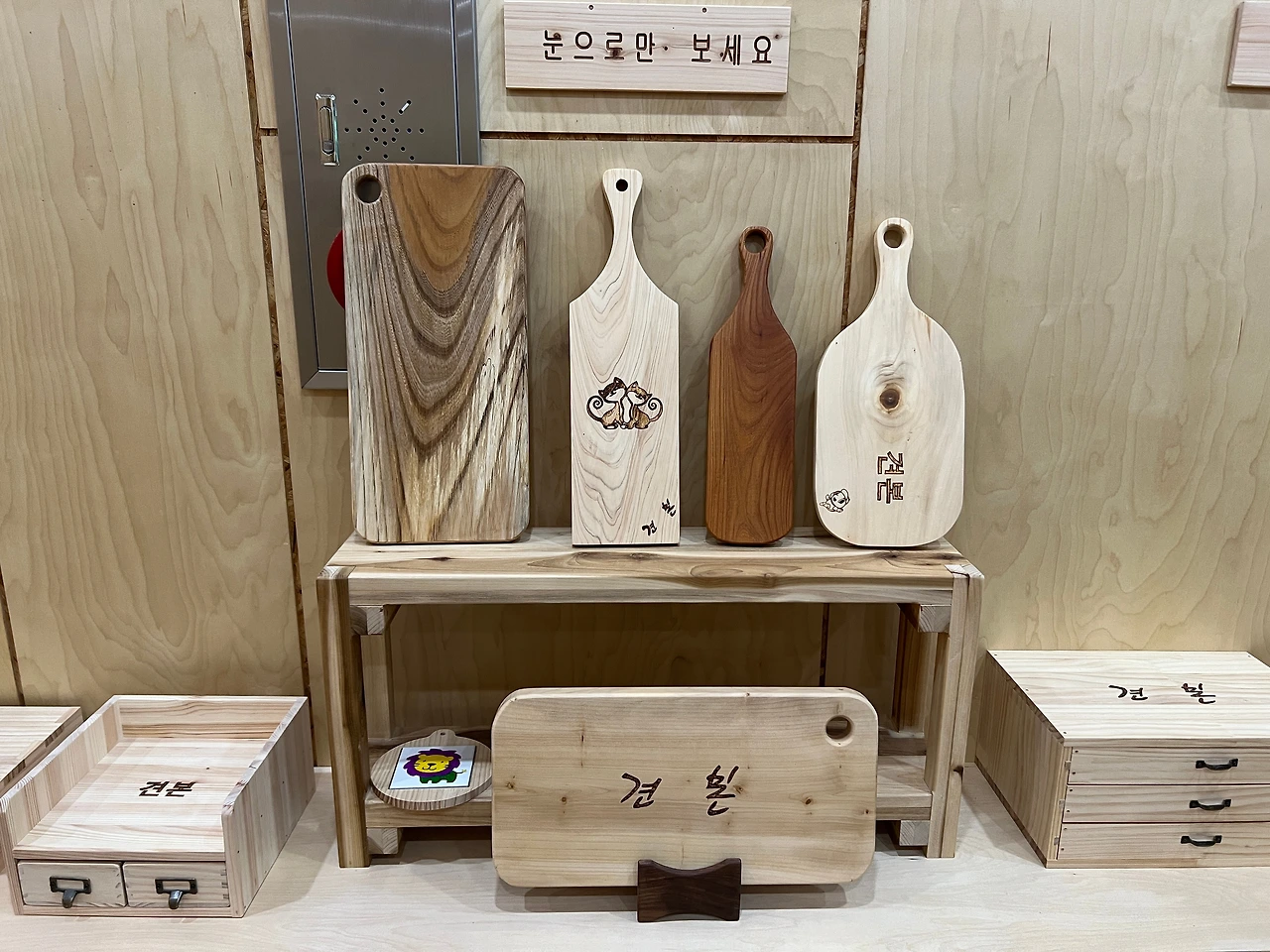 문을 열고 들어가니 넓직하고 한눈에 봐도 너무 깔끔한 실내가 각종 목재로 된 물건들로 예쁘게 진열되어 있었다. 더불어 코 끝을 찌르는 목재의 향기가 은은하게 강하다.