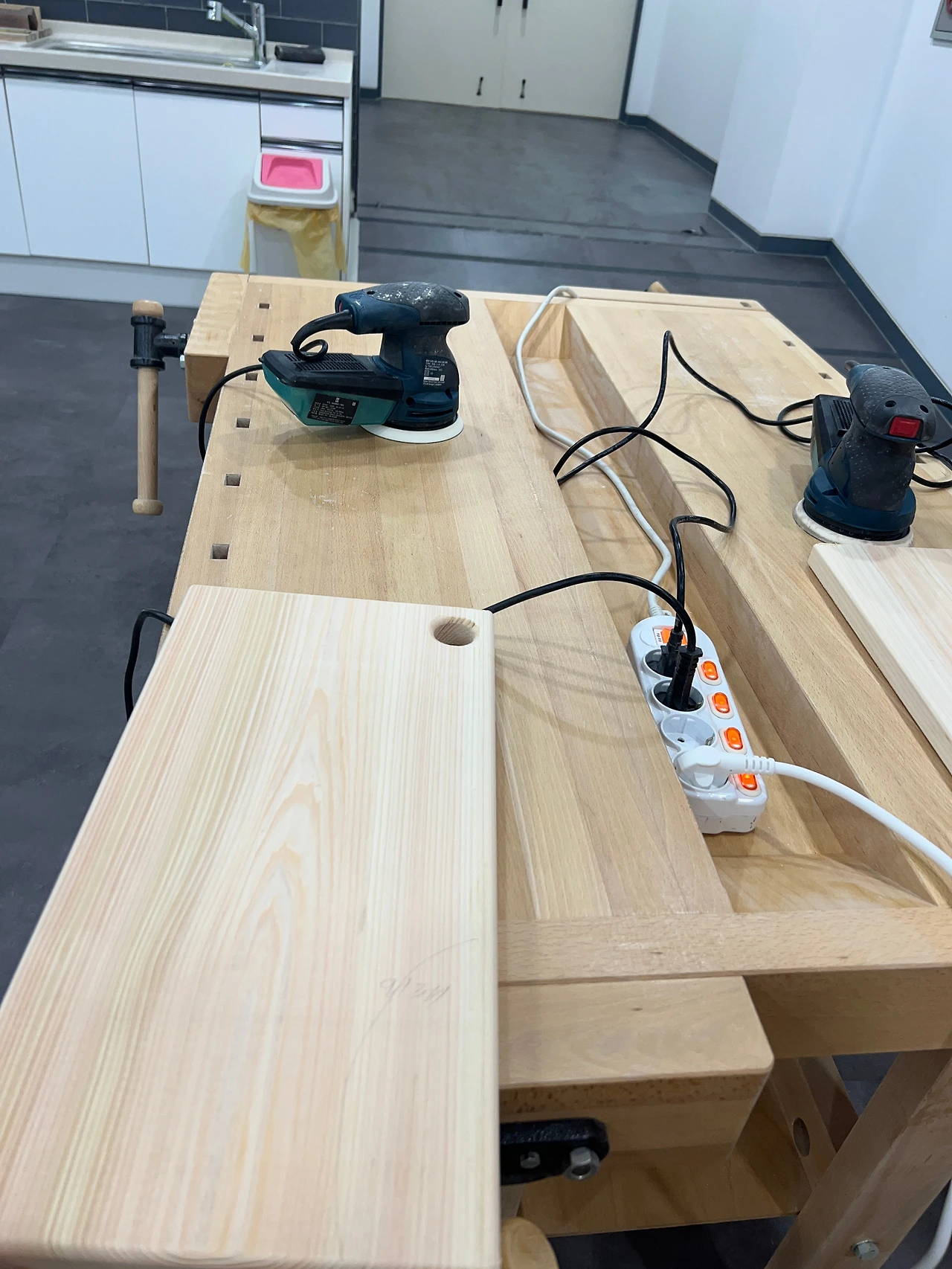 도마 만들기의 첫 작업이자 대부분의 작업은 사포질이다.