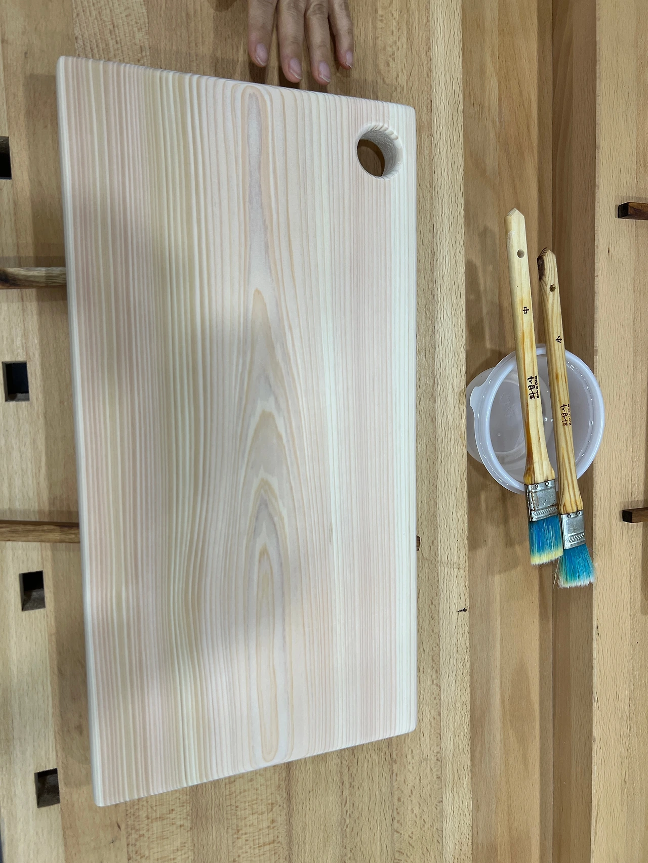 앞으로 남은 공정은 집에 돌아가 이틀간 서늘하고 건조한 곳에서 도마를 말리는 것.
