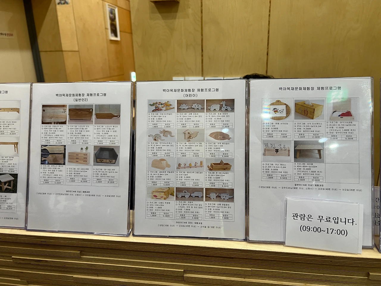 백야 자연휴양림 목재체험관은 휴양림 입구에 위치해 있었다.