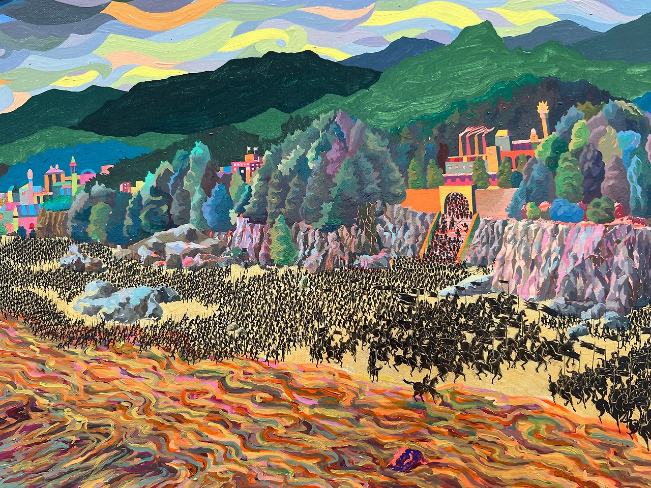 '덥고 습한 어느날 2009'는 엄청난 대작이다. 크기도 크리려니와 섬세하고 치밀하게 엄청나게 많은 이미지가 빼곡이 채워져 있었다. 자세히 들여다보면 스토리가 들린다. 덥고 습한 어느날의 한 장면이 마치 살아서 내 눈앞에서 재현된 느낌이다. 시선을 둘 곳이 너무 많아 어디서부터 봐야 할지.....