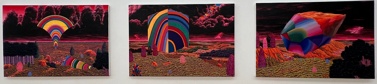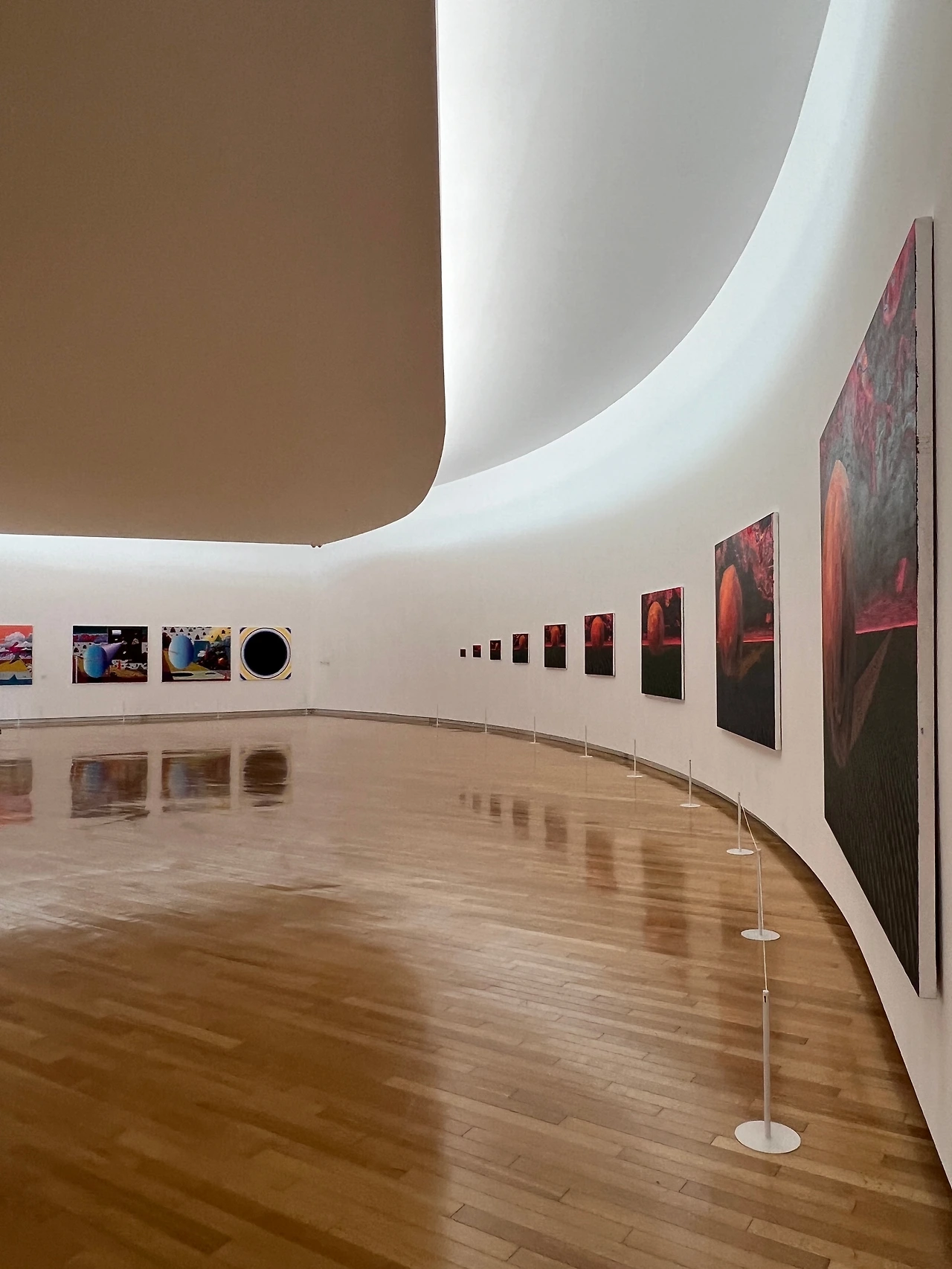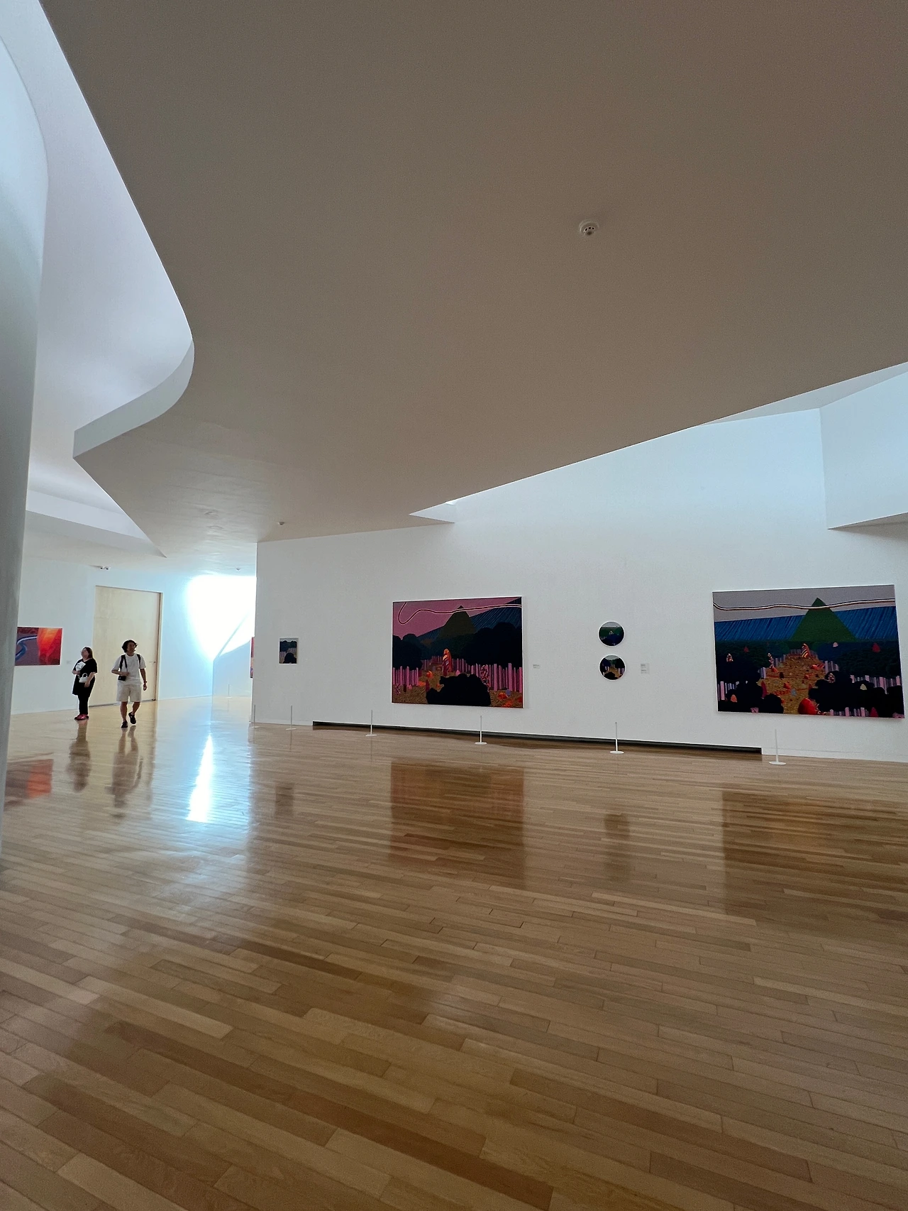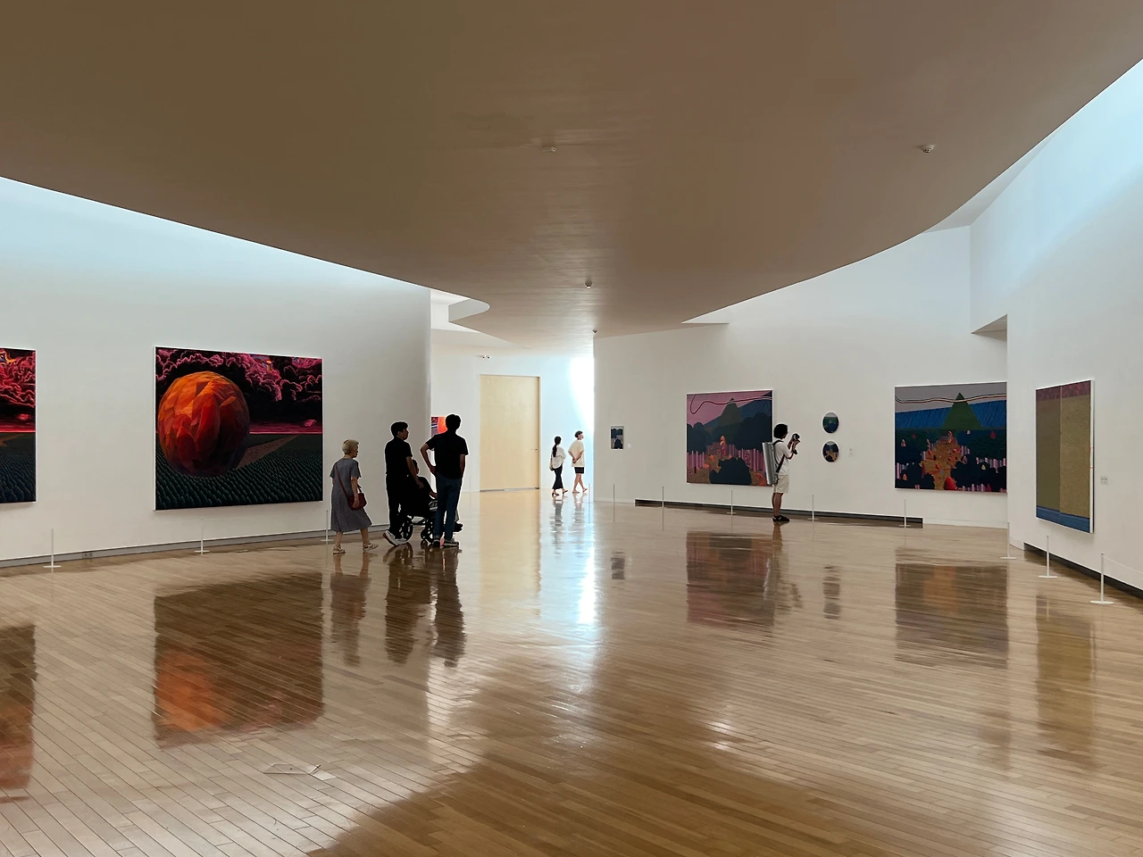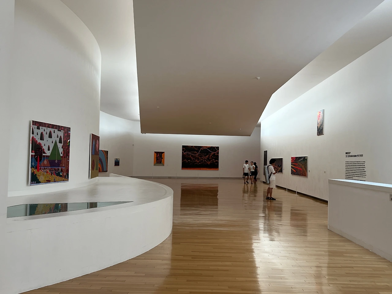 전시공간 자체가 일반적인 건물의 내부의 모습이 아니라 곡선이 주는 아름다움을 뿜어내고 있고 인공 조명이 아닌 자연광을 끌어 들여 인공적인 건물이지만 자연미가 느껴지는 곳이다. 여기에 강렬한 색채의 작품들이 저마다 스토리를 발산하며 마치 오랜 친구처럼 이질감없이 잘 어우러진다.