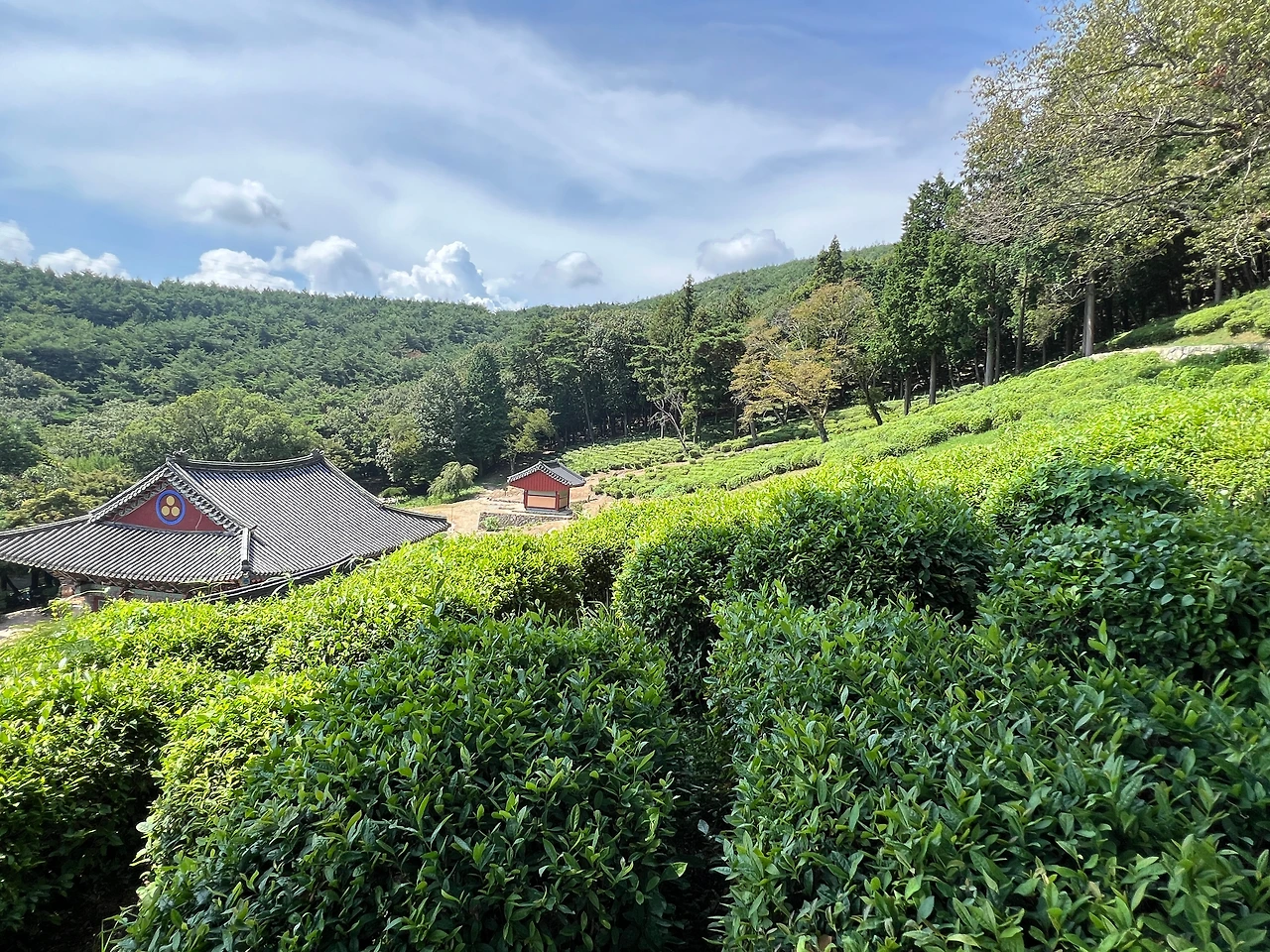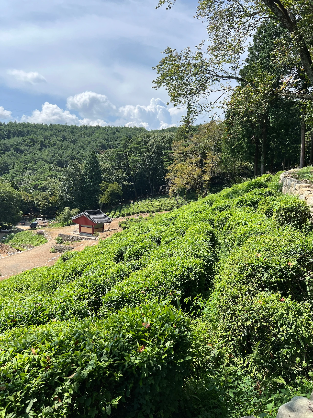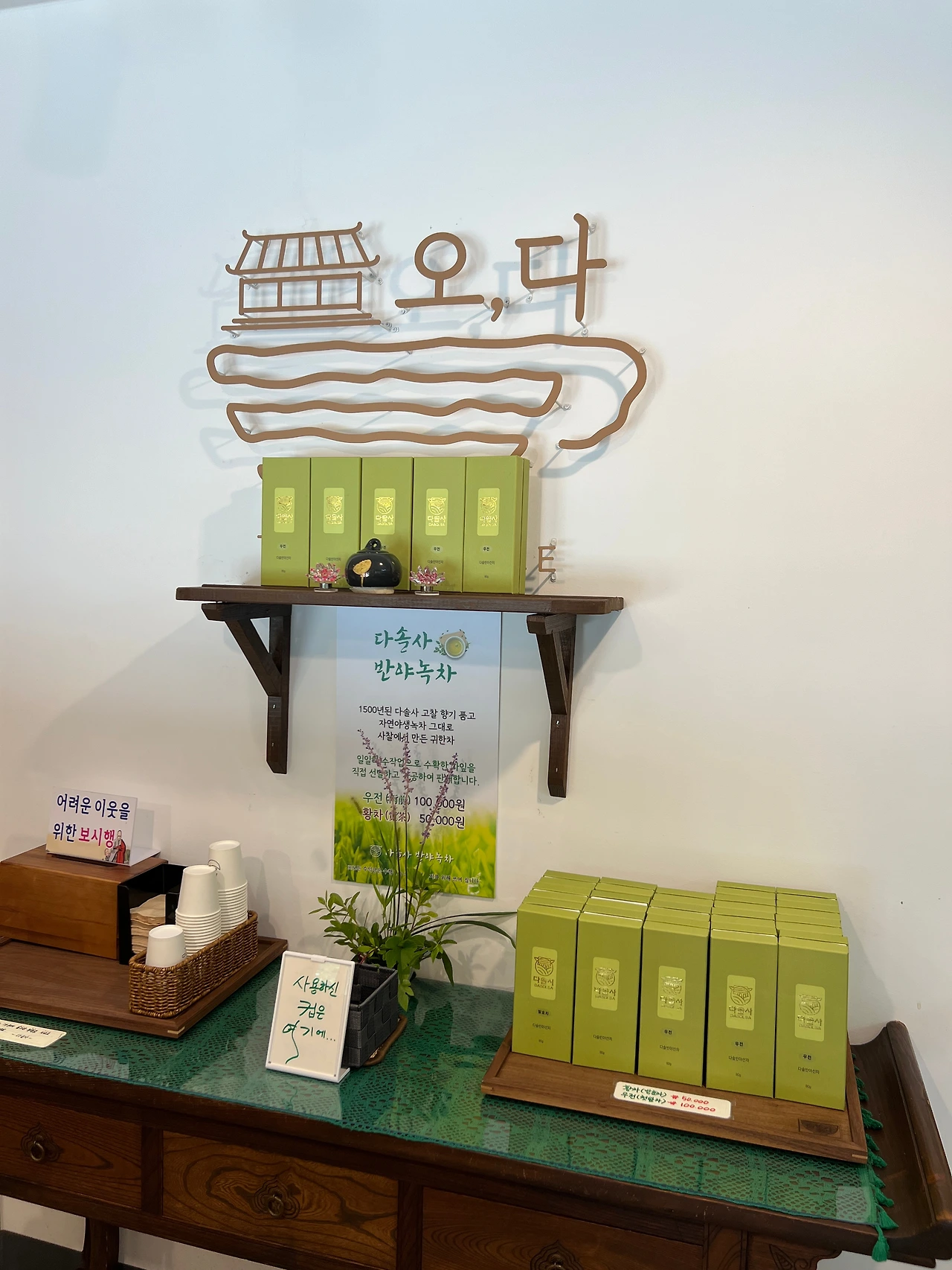 스님들이 한 땀, 한 땀 손으로 수확하여 말리고 찌고 한 녹차를 파는 곳이었다. 시음도 할 수 있었는데 우전차를 엷게 우려내 주셨다. 녹차를 좋아하는 편은 아니어서 녹차 전문가는 아니지만 우려낸 차를 보니 연한 연두빛 차가 정갈하였고 맛도 은은하게 녹차맛이 올라왔다. 떫은 느낌이 전혀 없었다. 가격이 비싼 듯 했으나 스님들이 짬짬이 시간이 날 때마다 수확을 하여 판매하기 때문에 많이 만들 수 없다고 한다. 완전 수제 녹차인가보다.