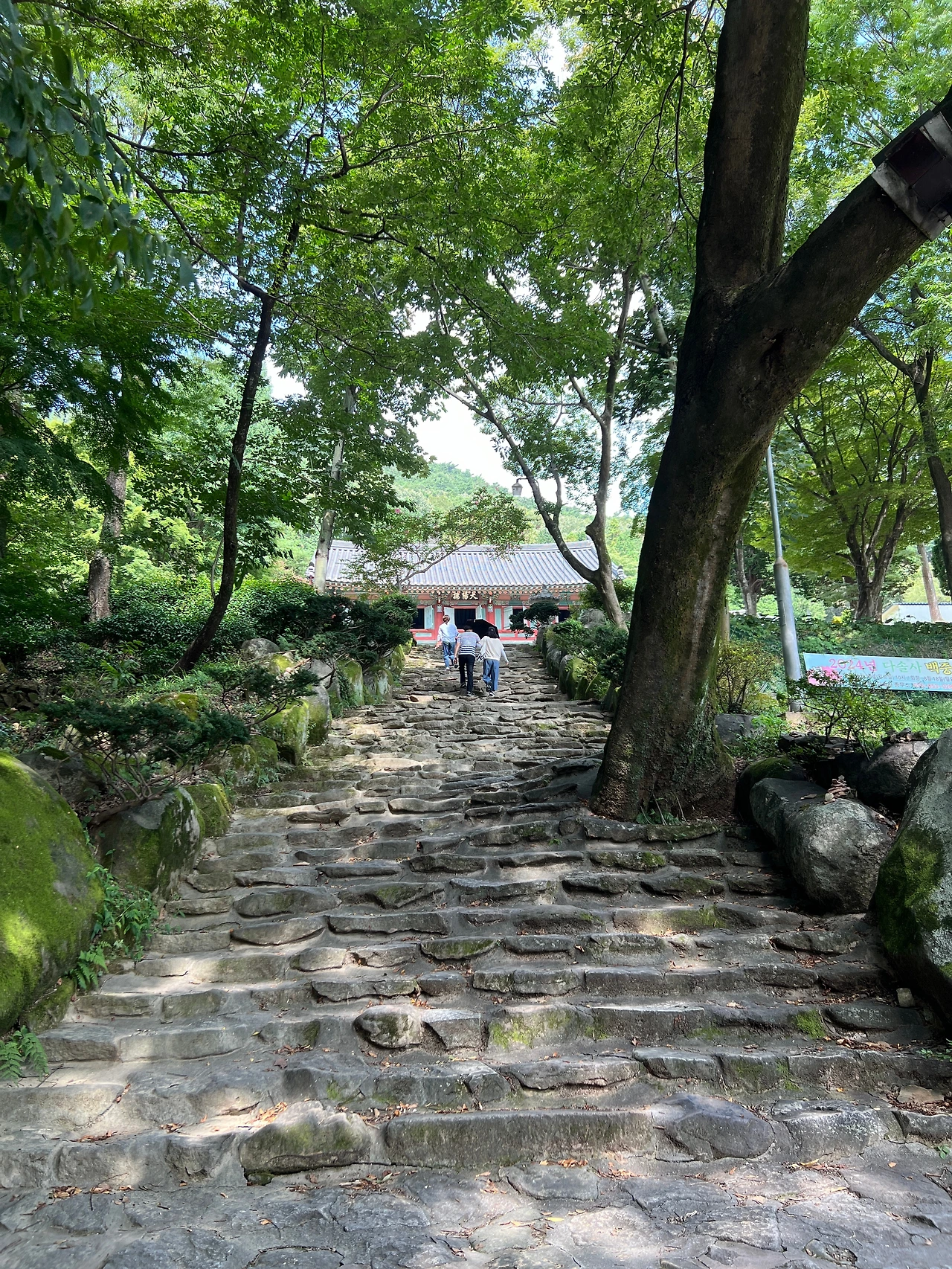 다솔사에는 일주문이 없었다. 아마도 보기에도 너무 시원한 소나무 숲이 아마도 일주문을 대신하고 있는 것은 아닐런지. 주차를 하고 나면 곧장 사찰로 올라간다. 긴 돌계단을 오르면 규모가 그리 크지 않은 다솔사를 만날 수 있다.