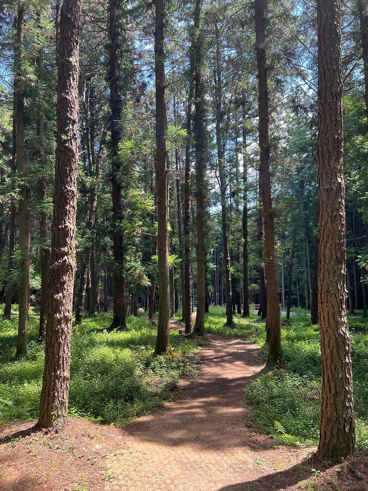 다솔사를 한바퀴 둘러보고 나니 아까 못 걸었던 숲길이 그리워졌다. 여기저기 나있는 산책로 중 하나를 골라 숲속 매력에 빠져본다. 일단 나무들의 키가 높고 쭉쭉 뻗어 있어서 나무아래에는 너무나 시원했다. 이럴수가 있을까. 이글거리는 태양도 단칼에 막아주는 대박 스킬이다. 더군다나 벌레도 없어서 걷기에 너무나 쾌적하다. 사천에 와서 가장 시원하게 지낸 하루~~ㅎㅎ