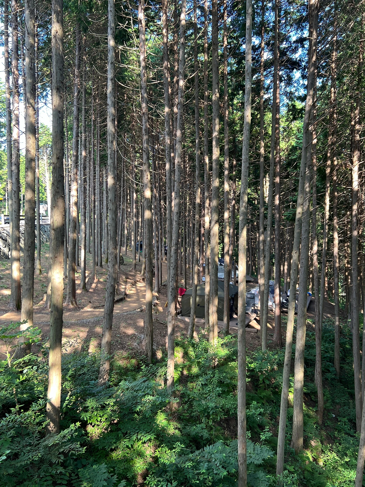 시원한 나무 그늘아래 텐트를 치고 한여름의 서늘함을 만끽하는 사람들이 부러울 정도.