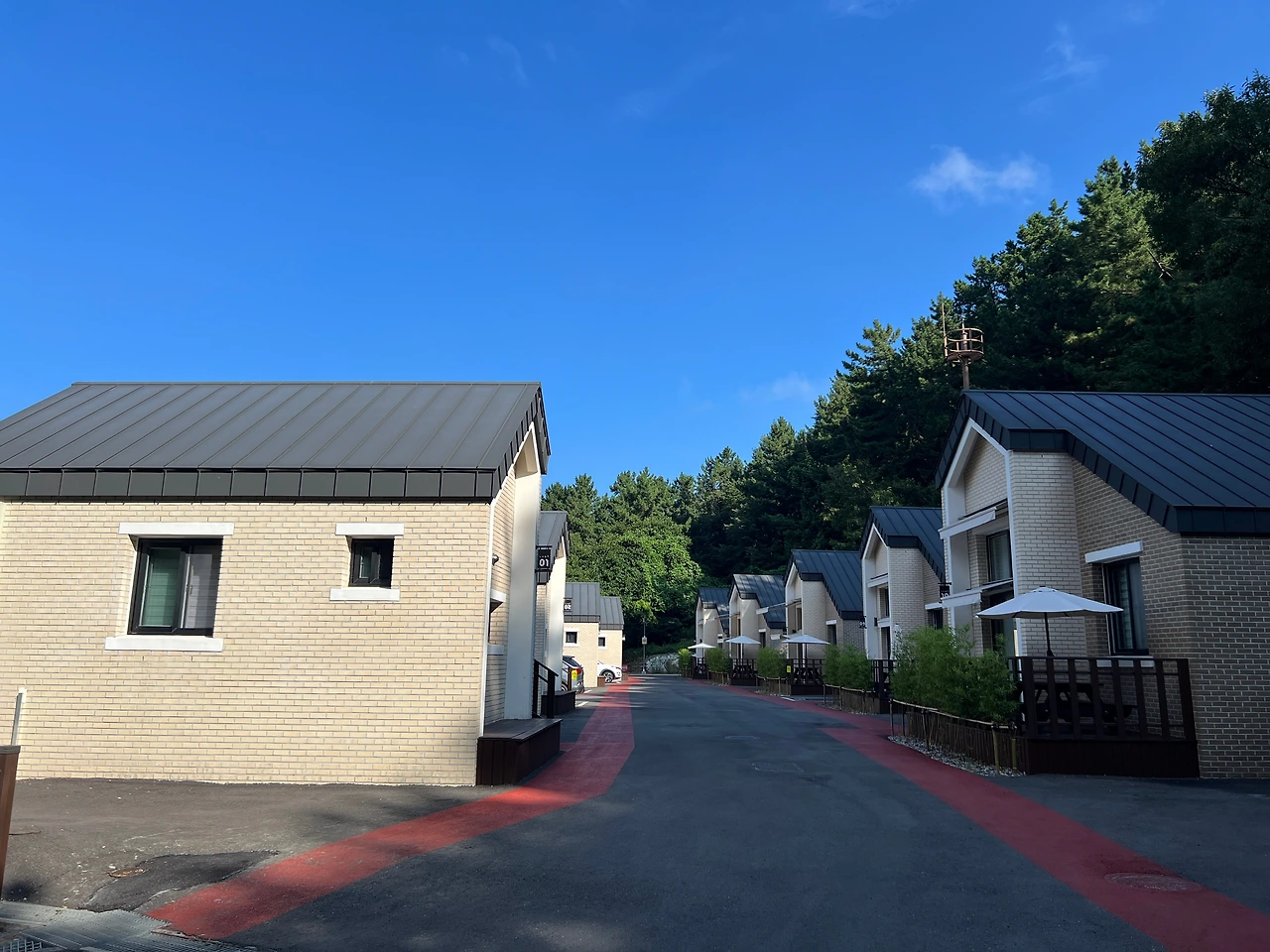 집 한채 사서 내 집 만들고 싶은 풍경이었다. 숲속의 집 앞에 파라솔이 있는 테이블도 있어서 분위기도 더 좋다. 내부를 보지는 못했지만 전원 주택 단지내에 세워진 집이라고 착각할 정도다.