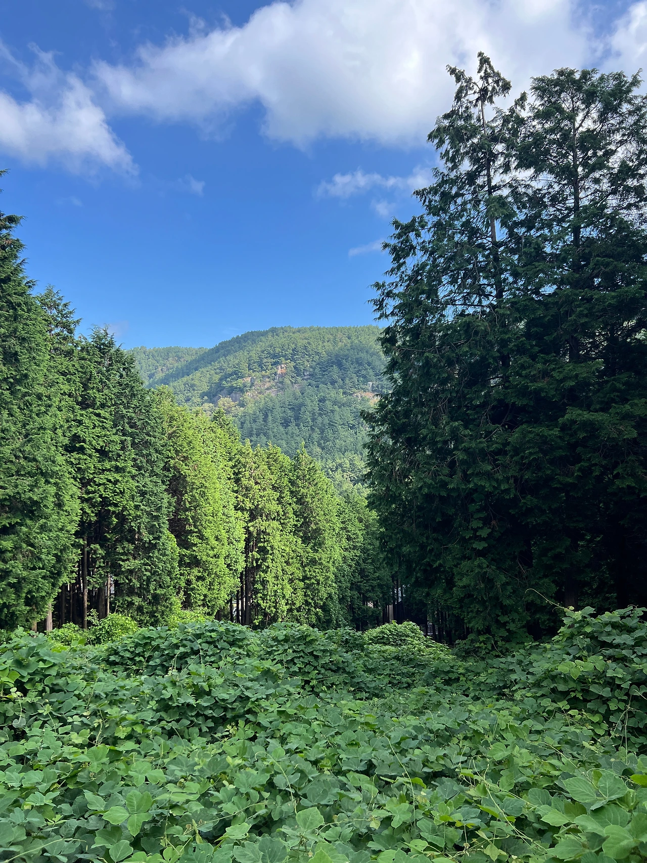 여름산행에 반바지를 입으면 풀숲에 베기도 하고 행여 뱀이라도 나올까 두려운데 편백숲은 고사리 같은 낮은 풀들만 있어서 걷기에 더 편안했다. 마치 잘 정리된 공원을 걷는 듯 하기도 하고.
