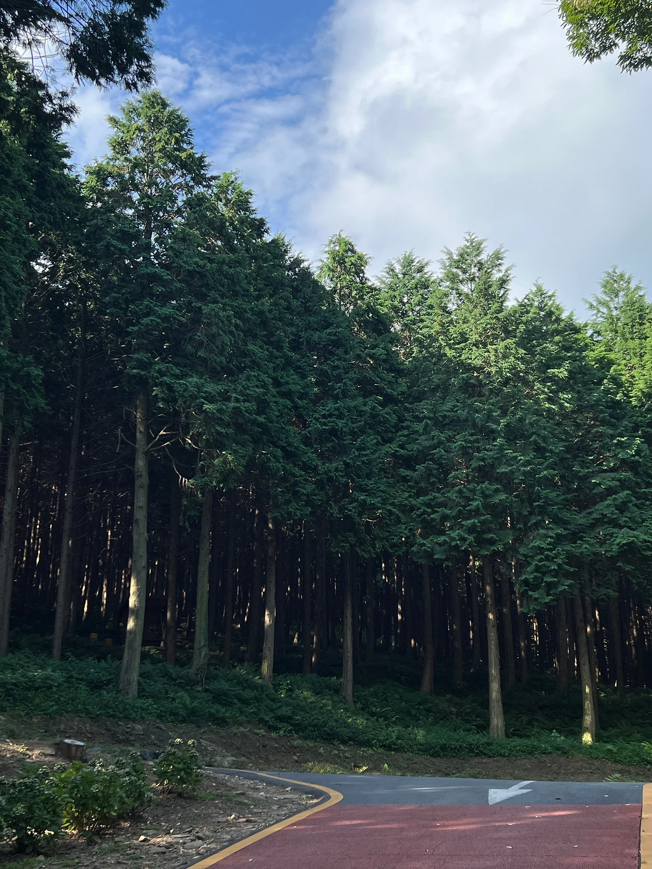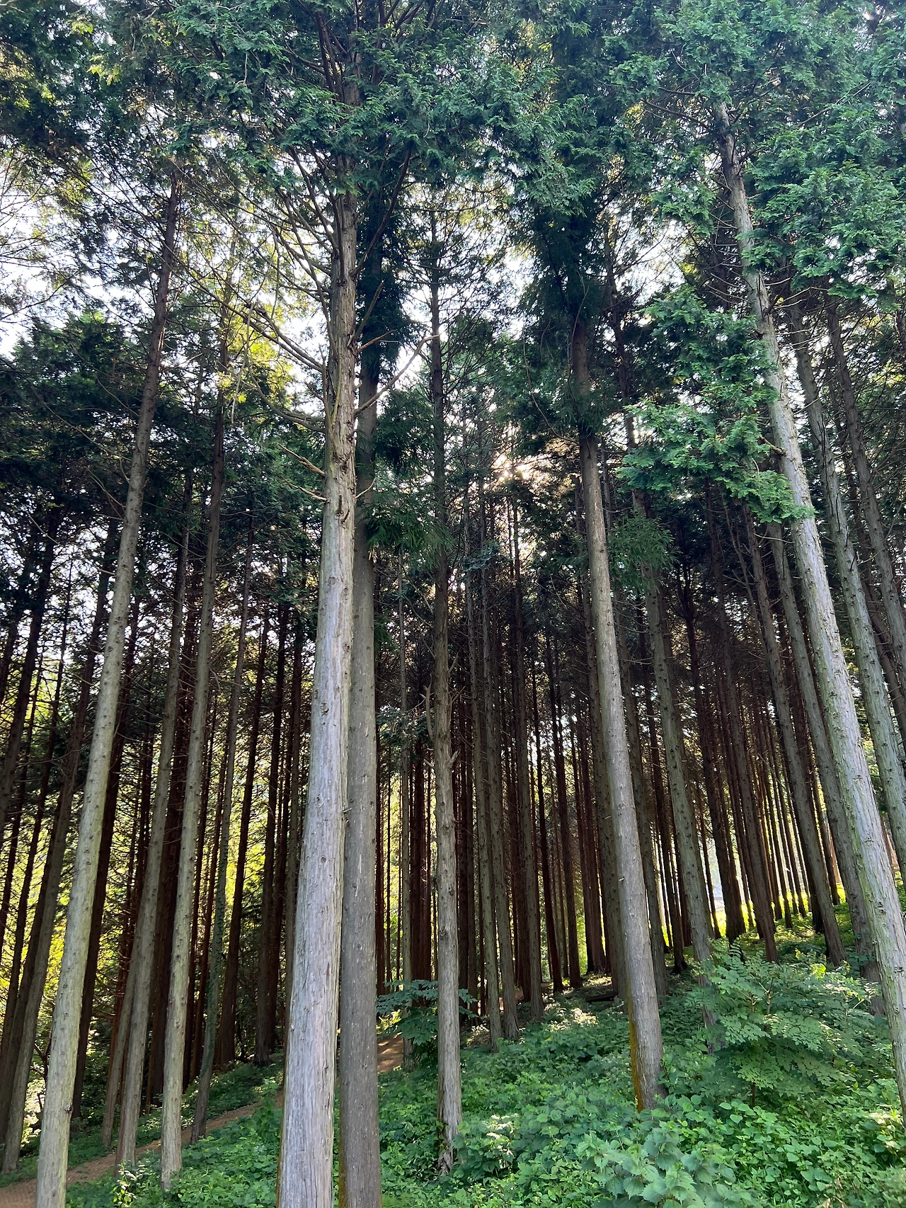 편백나무 숲은 햇빛이 많이 안 들어와서인지 풀들이 거의 없었다.