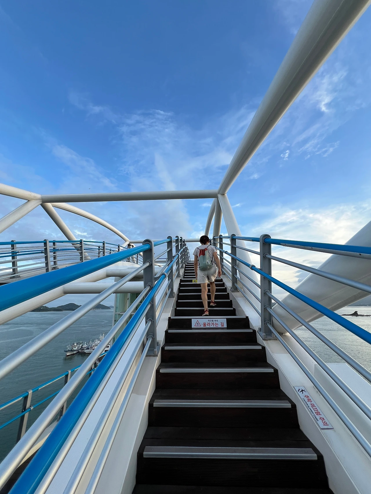 삼천포 항에서 바로 엘베를 타고 올라갈 수도 있고 청널공원에서 스카이브릿지로 걸어올라갈 수도 있게 되어 있었다. 가끔씩 느끼지만 사천시는 여행에 진심이다. 정말!