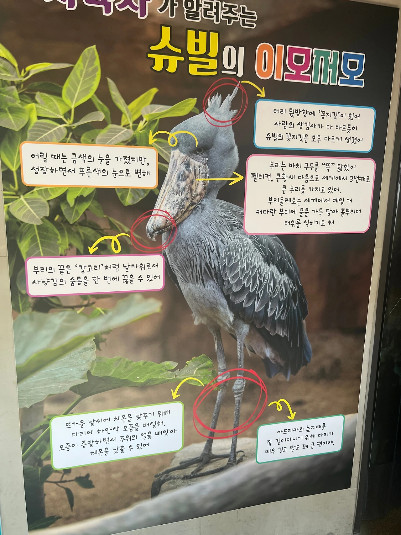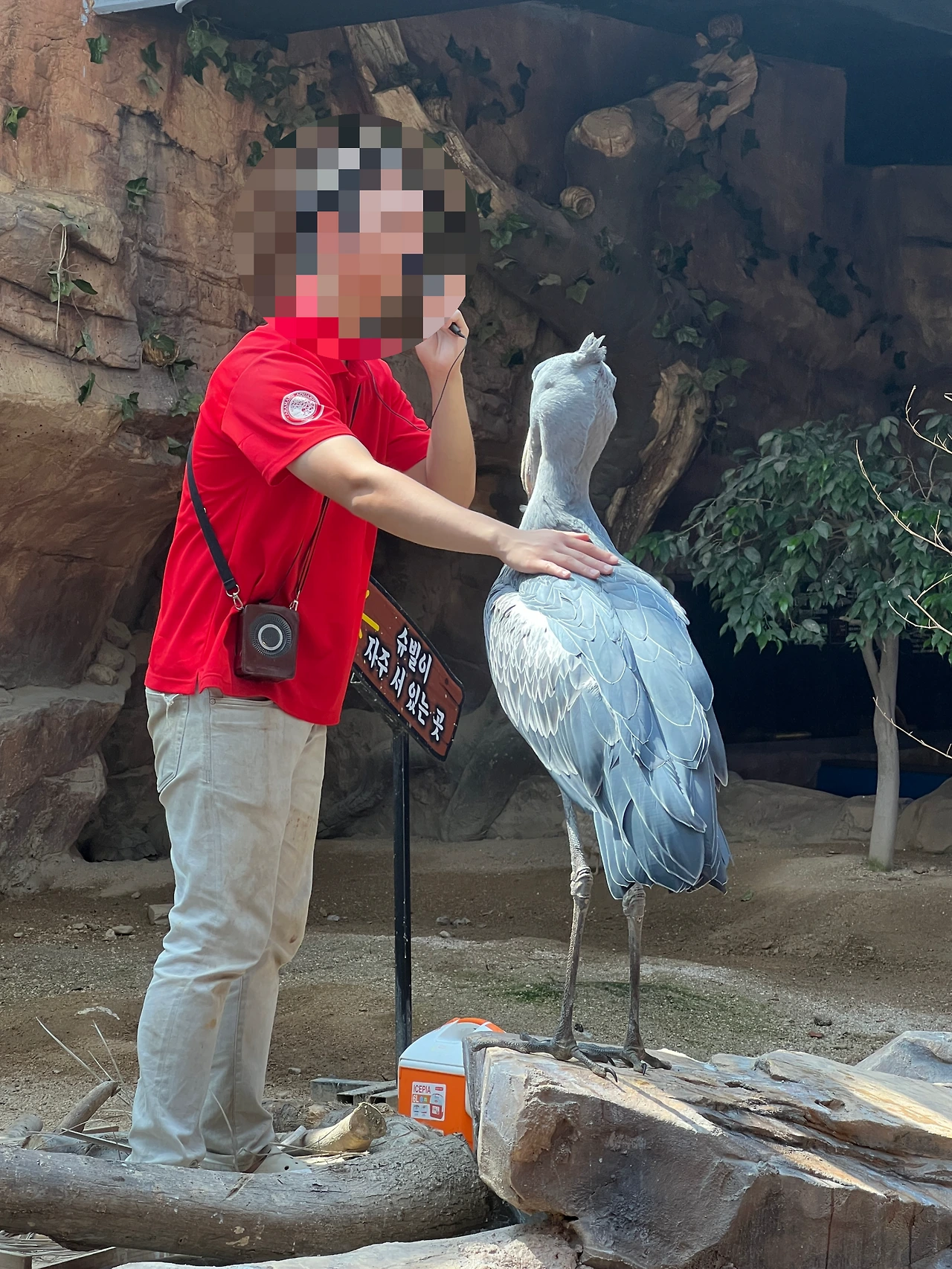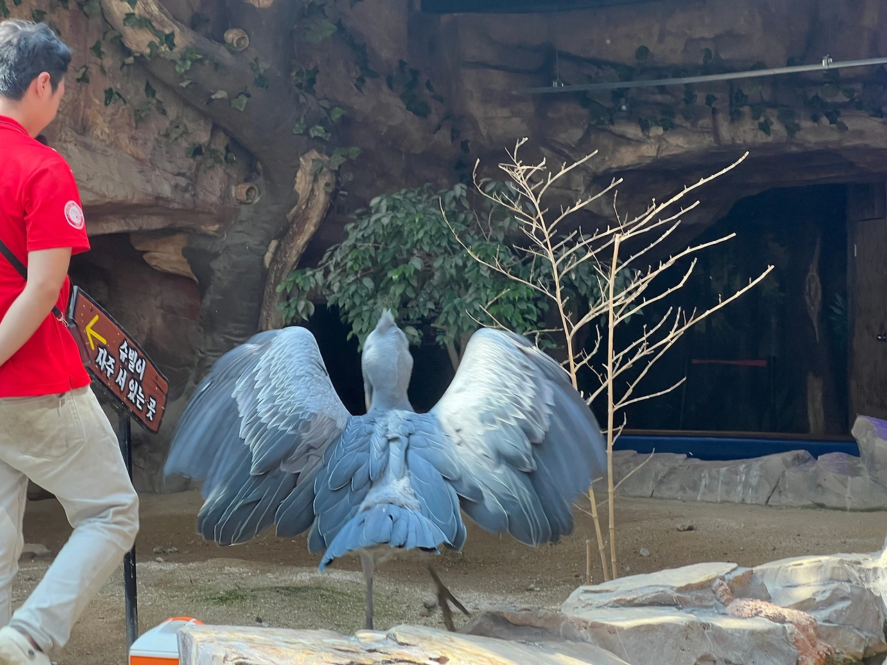 슈빌에게 먹이도 주며 슈빌의 특징에 대해 설명을 해 준다. 아이들에게 어찌나 인기가 많은지....가까이 가기 힘들다. 가장 하일라이트는 아무래도 슈빌이 큰 날개를 펼치고 날아오를 때다.