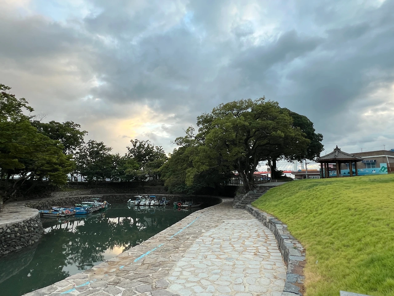 순해진 잔디색이 이국적으로 보였고 그 안에 정박되어 있는 배들은 엄마 품에 안긴 듯 그 어느 곳 보다도 안전해 보였다. 천혜의 보트 주차장인 느낌이다.