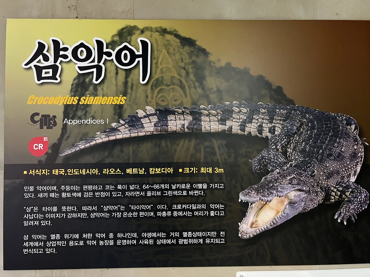 들어가자 마자 만날 수 있는 동물은 샴악어다.
