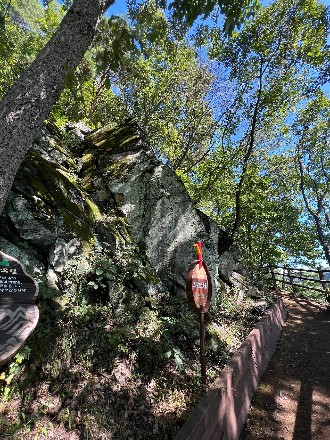 이곳 삼신바위를 지나 연하협 구름다리를 건너지 않고 앞으로 계속 나아가면 신랑바위가 충청도 양반길 제 1코스다. 신랑바위가 있는 곳까지다. 한번쯤 걸어보고 싶은 길이니 기억해둬야겠다.