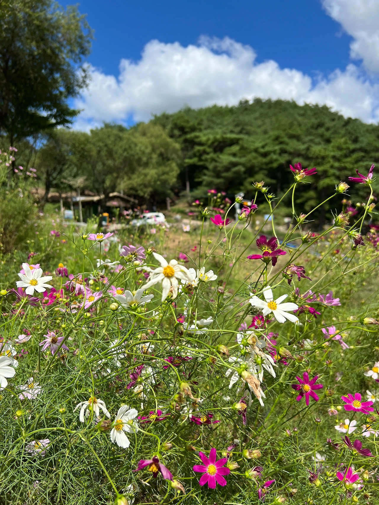 코스모스가 가을의 시작을 알리며 흐드러지게 피었다.