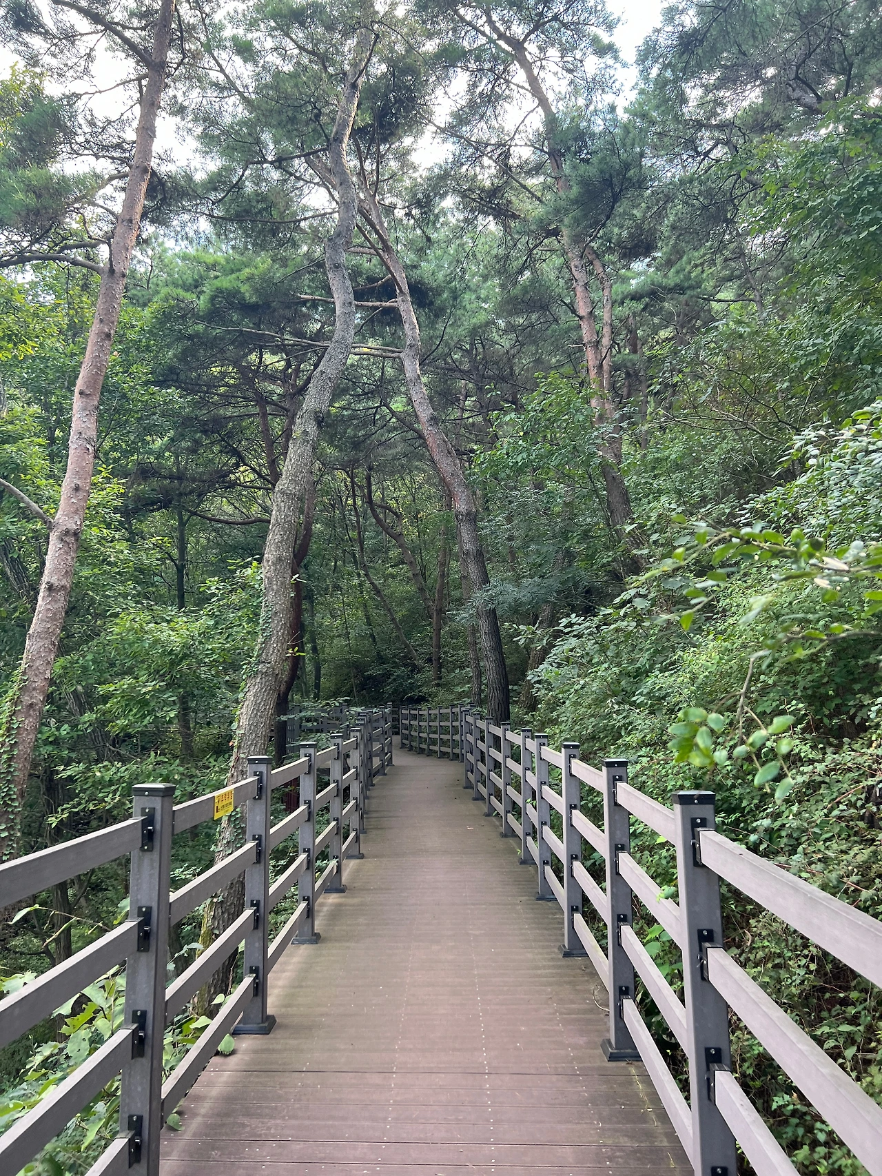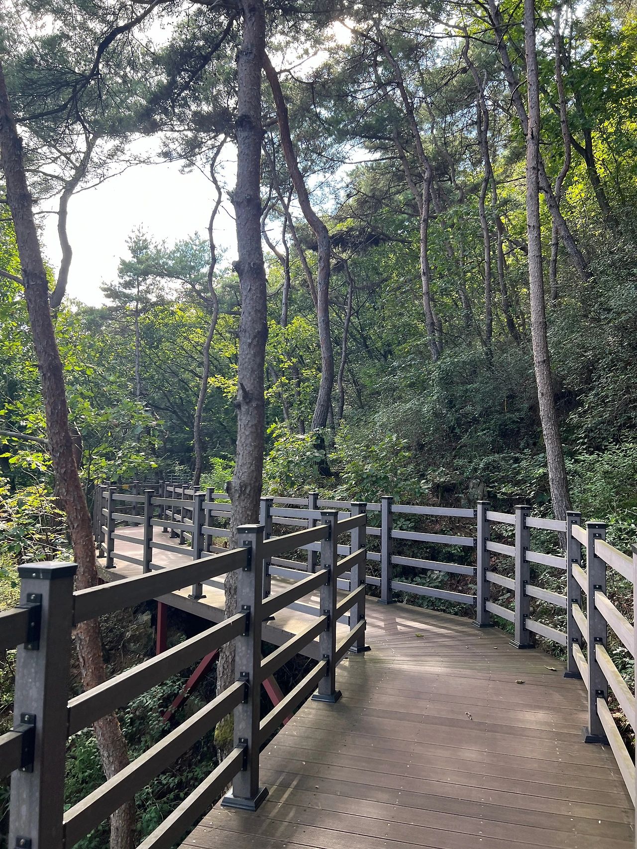산의 중간 부분에 무장애 데크길을 만들어 놓아 몸은 완전 숲속에 있는데 밑은 데크길이라 걷기에 너무 좋고 또한 숲속 한가운데라 피톤치드 등뿍 마시며 걸을 수 있다는 점이 너무 좋았다.