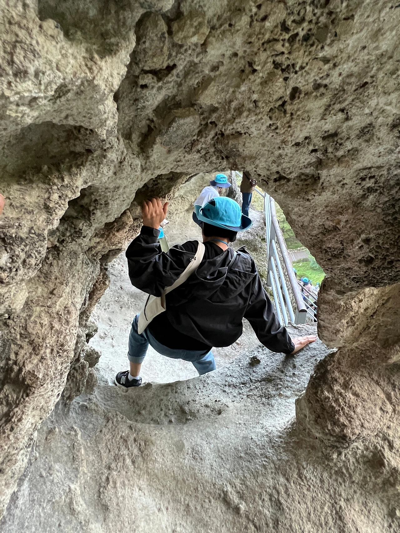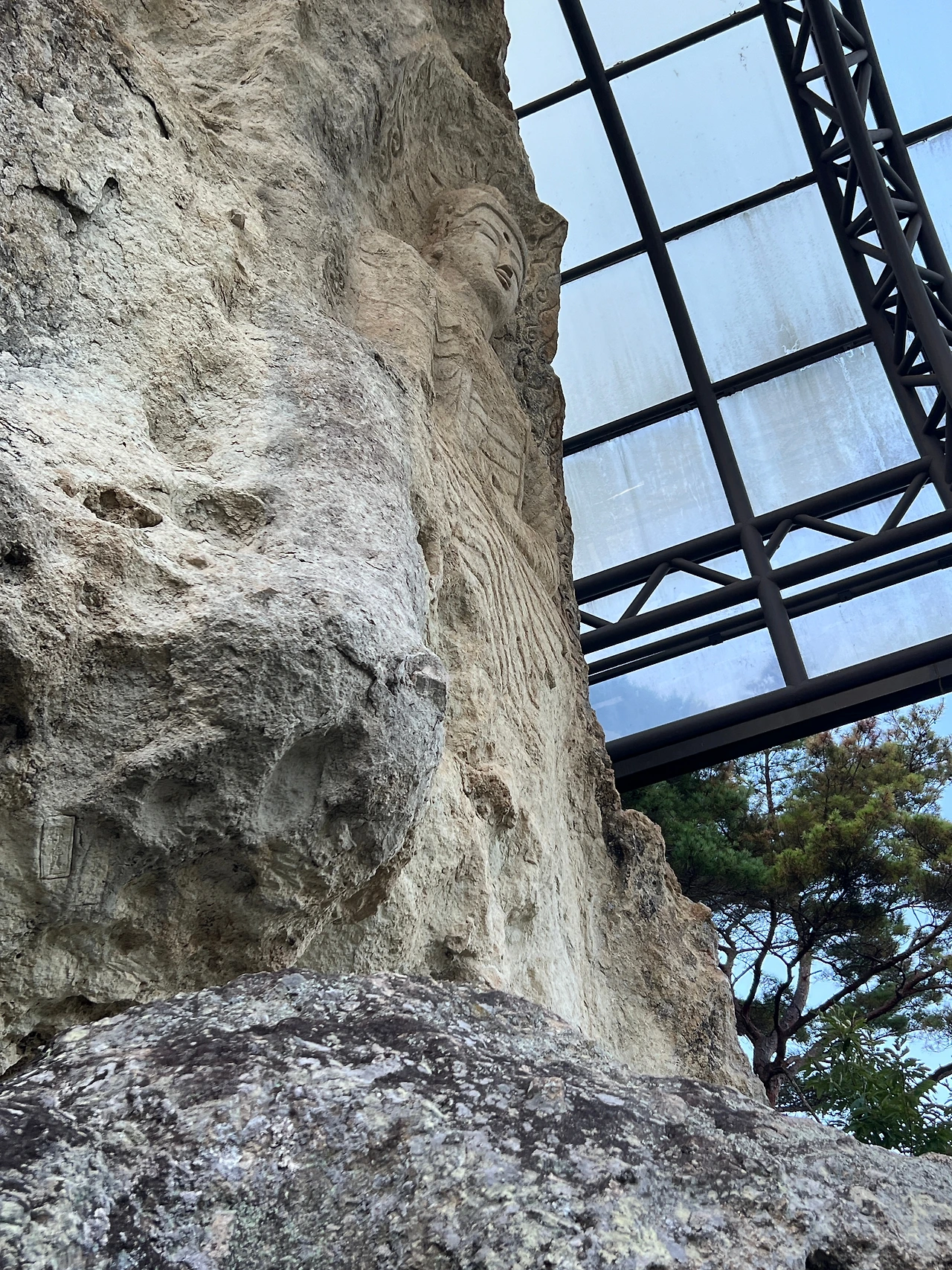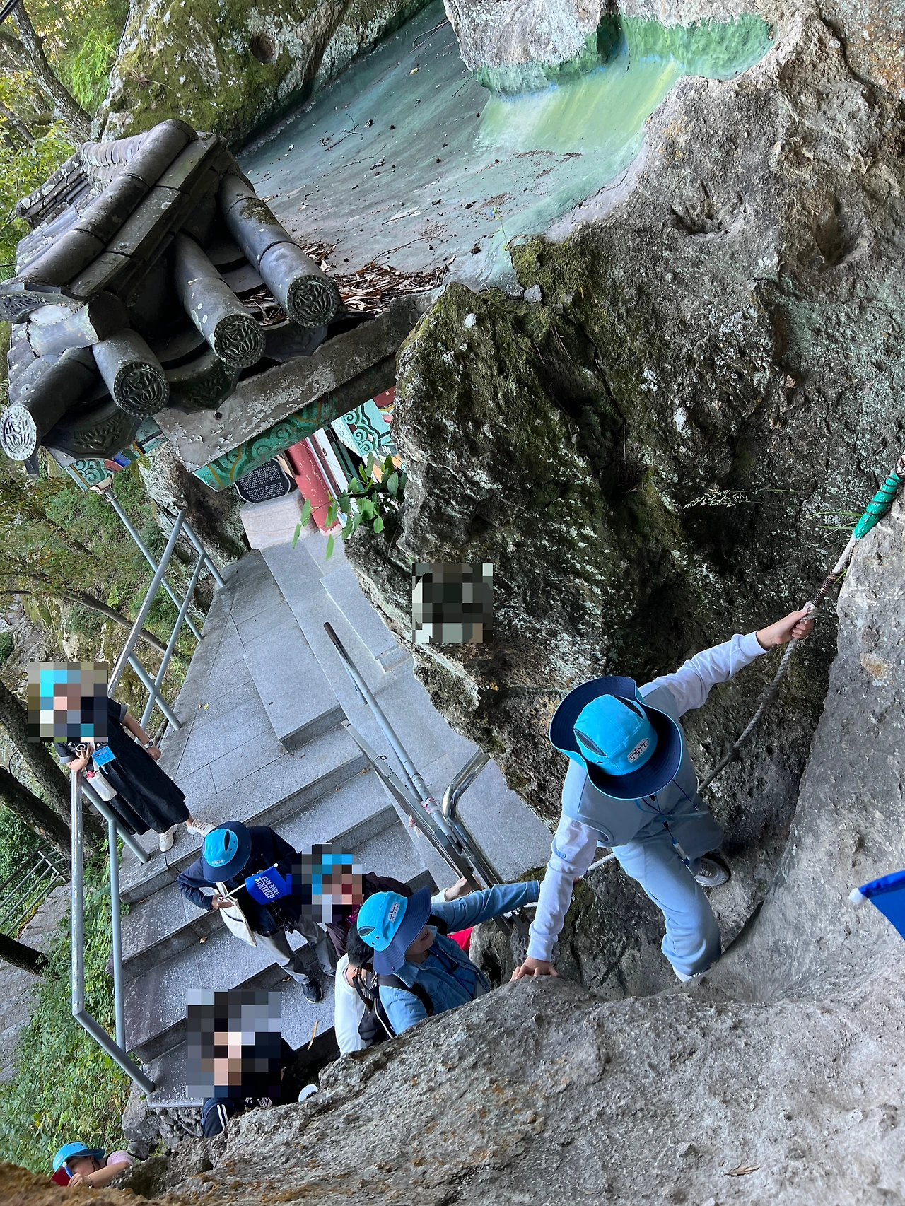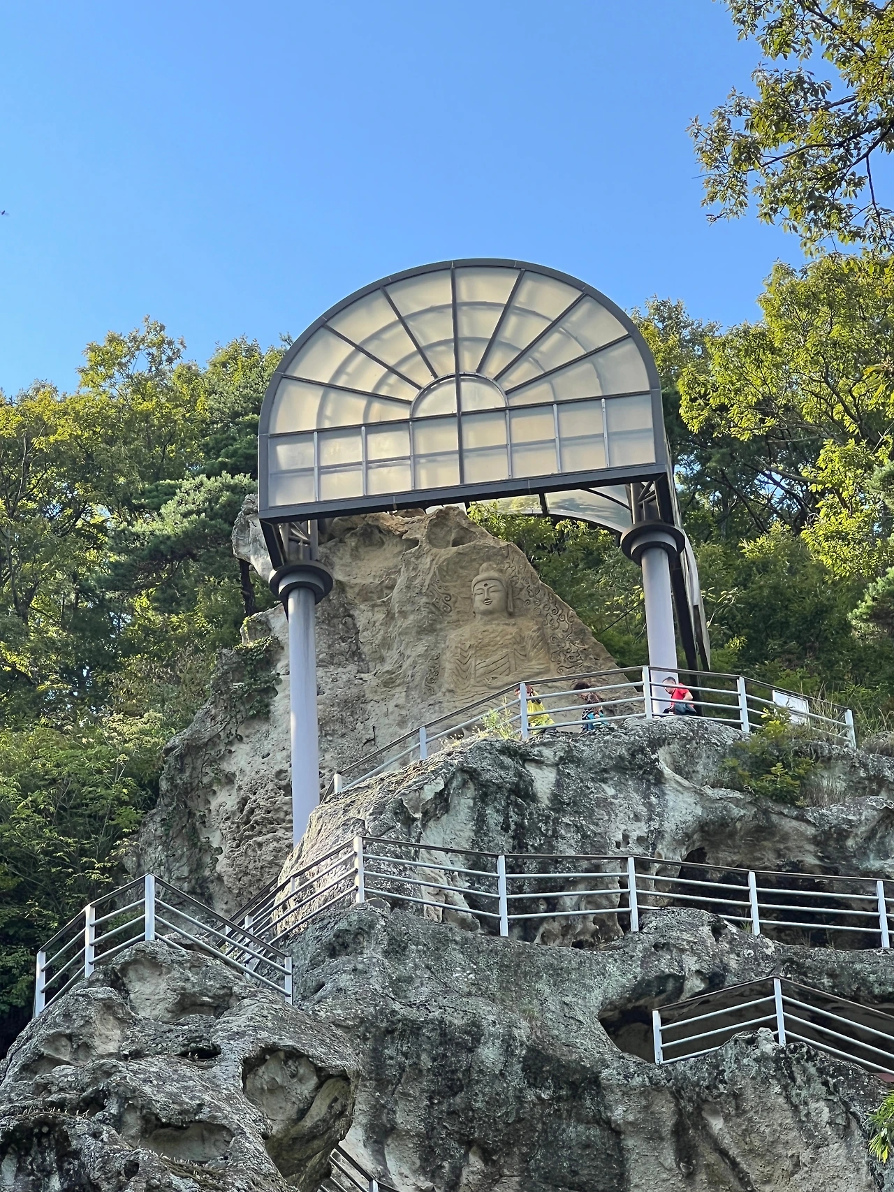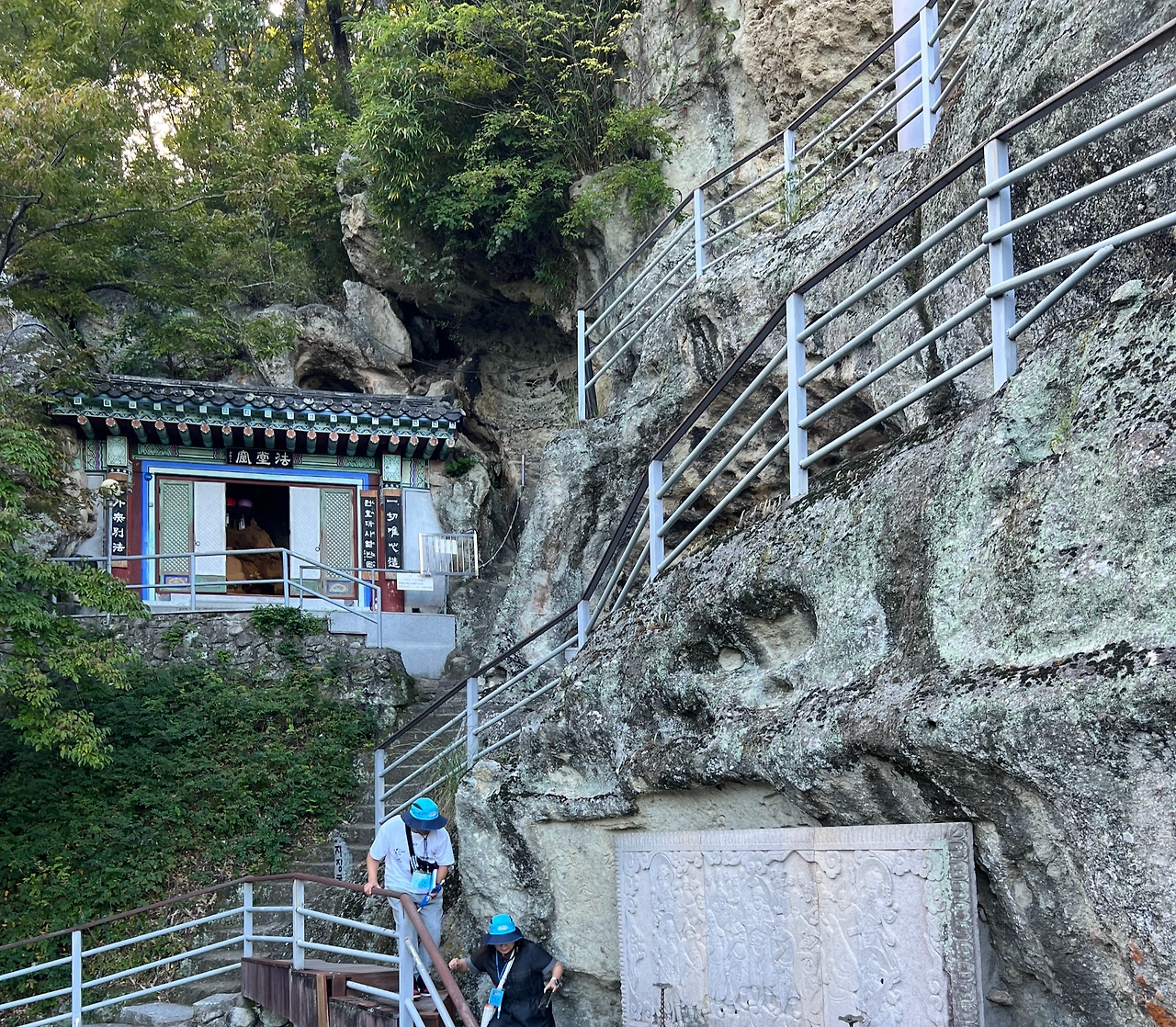 마애여래좌상으로 오르는 길은 빡세다. 난간을 잡고 위에서 끌거나 아래에서 밀거나 하며 올라가야하는 가파른 곳도 있고 터널처럼 뻥 뚫려 있어 몸을 숙이고 간신히 지나가야 하는 곳도 있다.