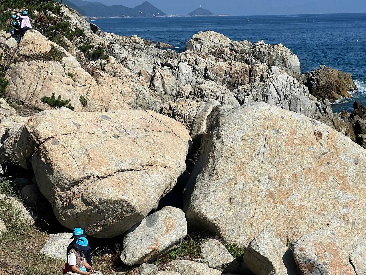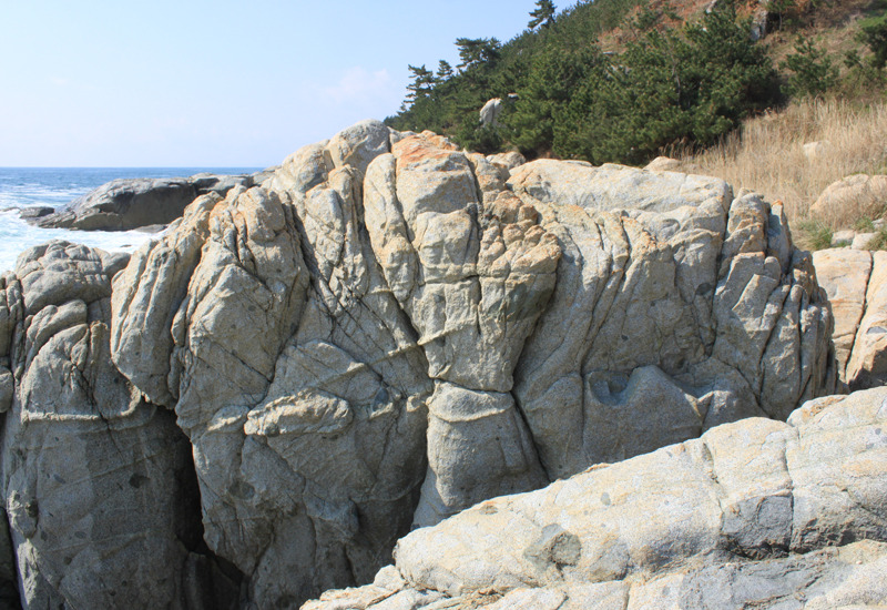 해안을 따라 조성된 산책로에는 약 1억 5천만년 전에 지하 깊은 곳에서 마그마가 식어 형성된 화강섬록암이 자리를 잡고 있다. 이 암석에서는 여러 방향으로 쪼개는 절리(단열), 포유암, 돌개구멍등 다양한 지질 구조를 보여준다.