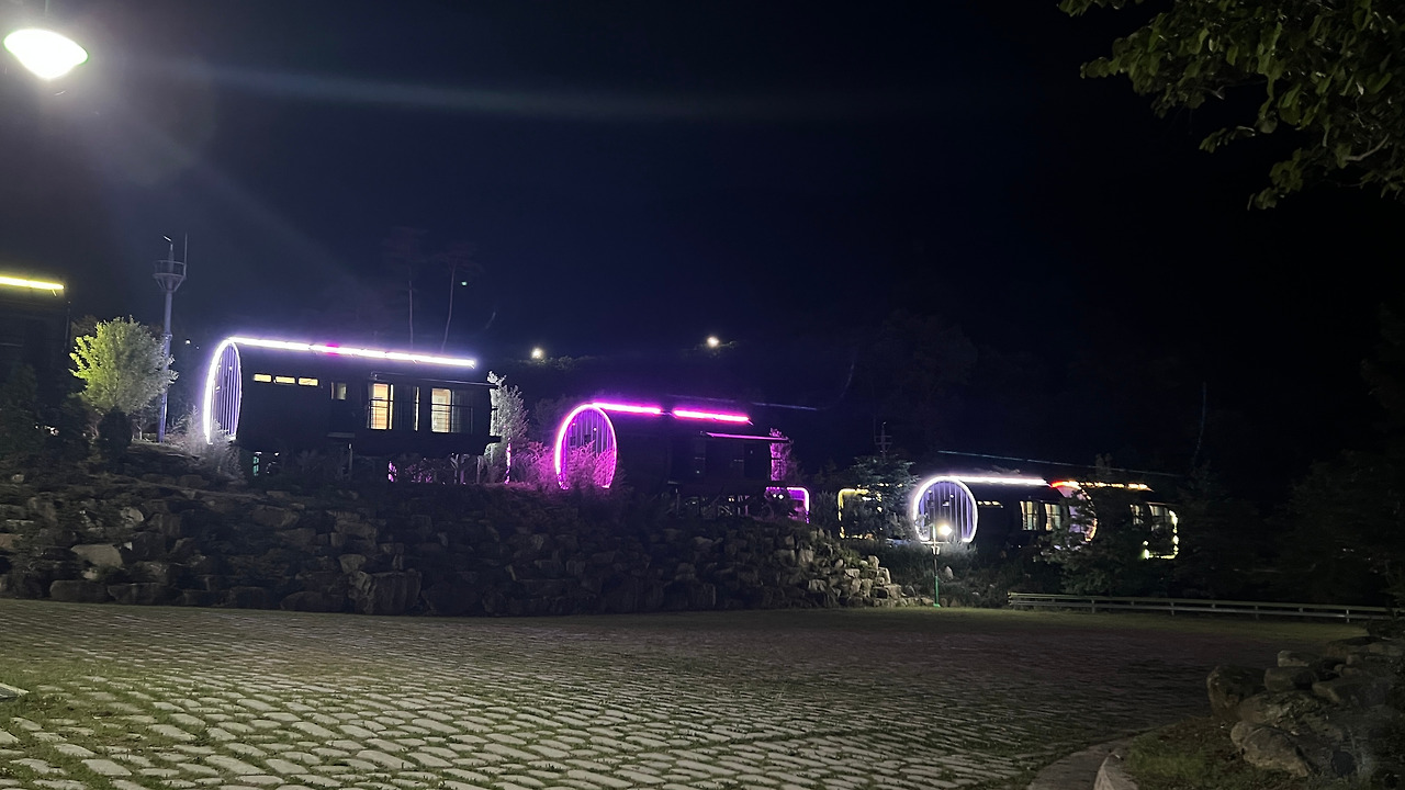 무언가 자연휴양림 숙소와는 어울리지 않는 화려한 불빛이라 다소 놀라기도 했다는~~~