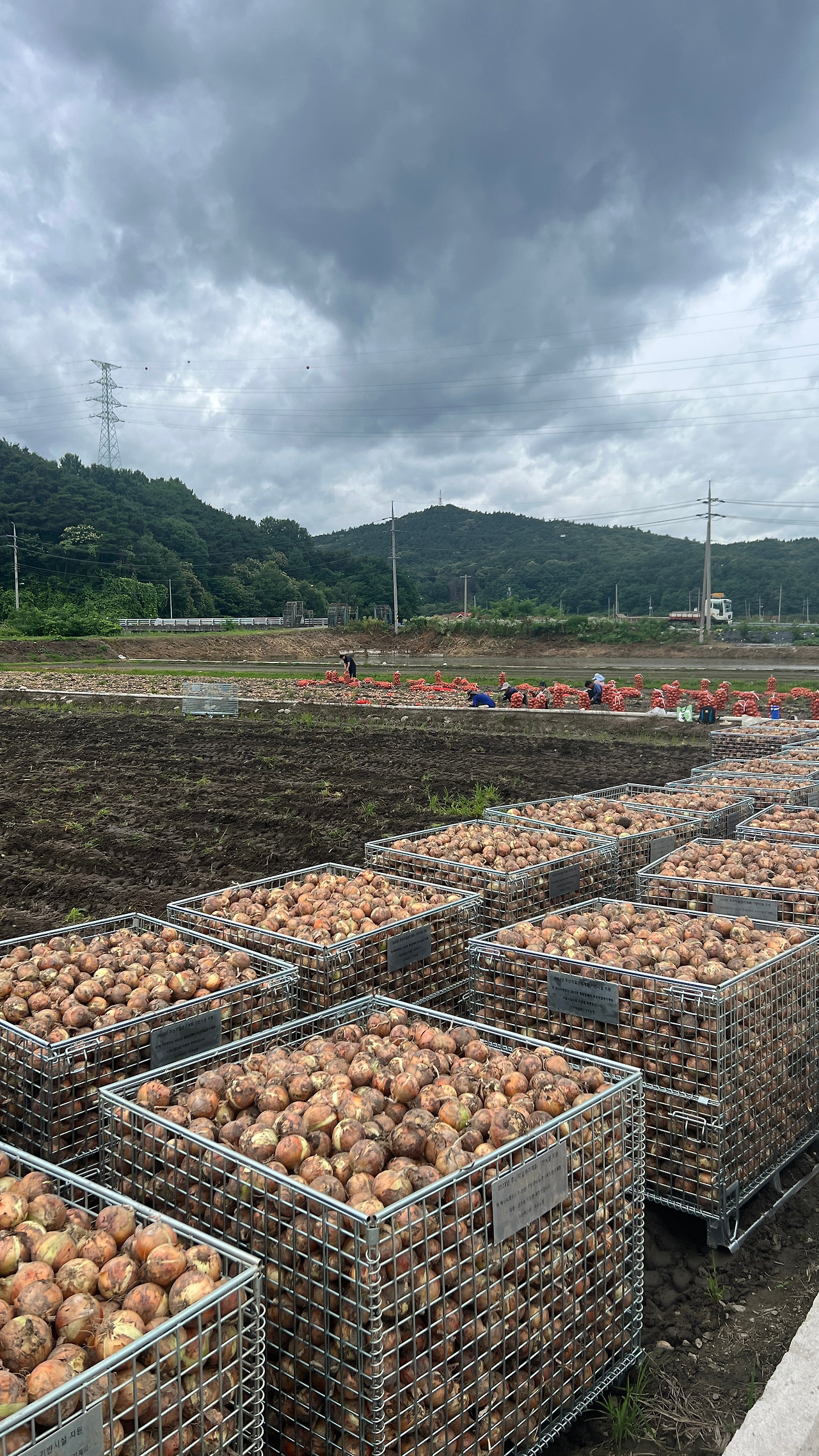 차가 달리는 길 양쪽으로 엄청난 양의 양파를 볼 수 있었다. 6월 중순이라 그런지 양파는 이미 수확을 했고 대한민국 사람이라면 누구나 다 아는 그 빨간 양파망에 양파들이 이미 가지전히 담겨져 있었다.