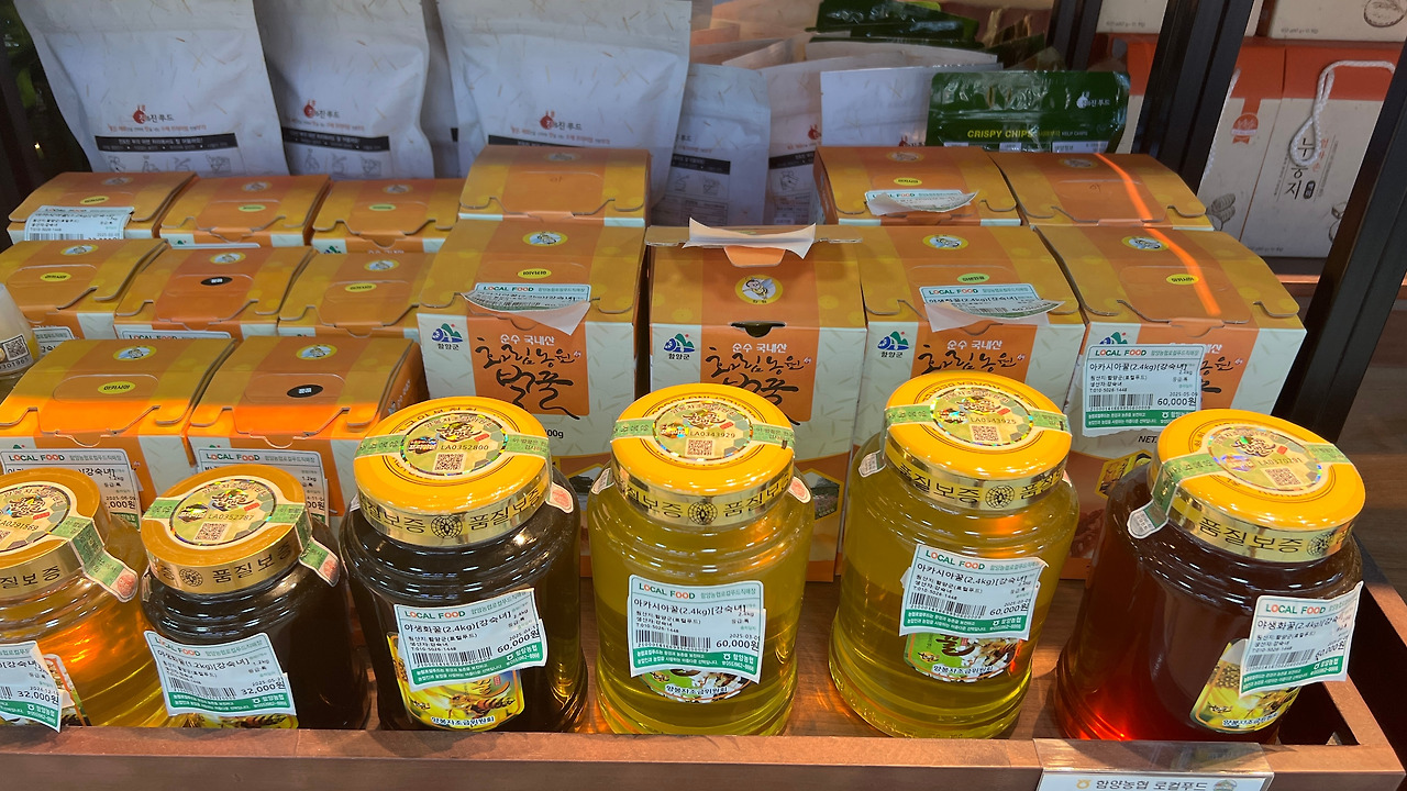 그리고 야생화 꿒과 아카시아 꿀들이 있었다. 색감이 짙은 것이 야생하 꿀이다.