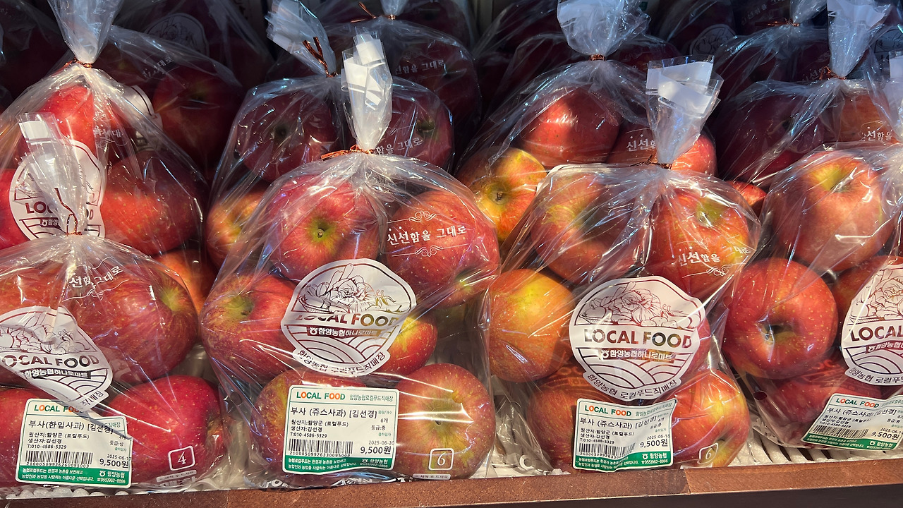 일단 초당옥수수는 정말 싸고 맛있었다. 6개 육천원이었는데 봉지에 들어있는 레시피대로 쪄서 먹으로 달콤하면서도 톡톡 터지는 수분감이 정말 그만이었다. 나중에 돌아올 때 더 사가지고 오고 싶을 정도였다. 그리고 사과는 그 전날 사서 먹어봤는데 달고 맛있으면서도 아직도 여전히 단단해 맛있었다. 두 종류가 있었는데 둘 다 맛있지만 쥬스용보다는 한입사과가 더 단단하고 아삭하고 달고 새콤하고 맛났다.