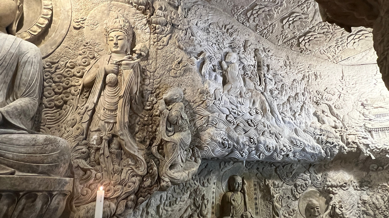 바위 벽면에 새겨진 불상들이 은은한 촛불빛에 살아 숨 쉬는 듯 보였다. 각각의 조각상들은 모두 다른 표정을 하고 있었는데, 어떤 것은 자비로웠고, 어떤 것은 엄숙했으며, 또 어떤 것은 깊은 명상에 잠겨 있는듯 보연다.