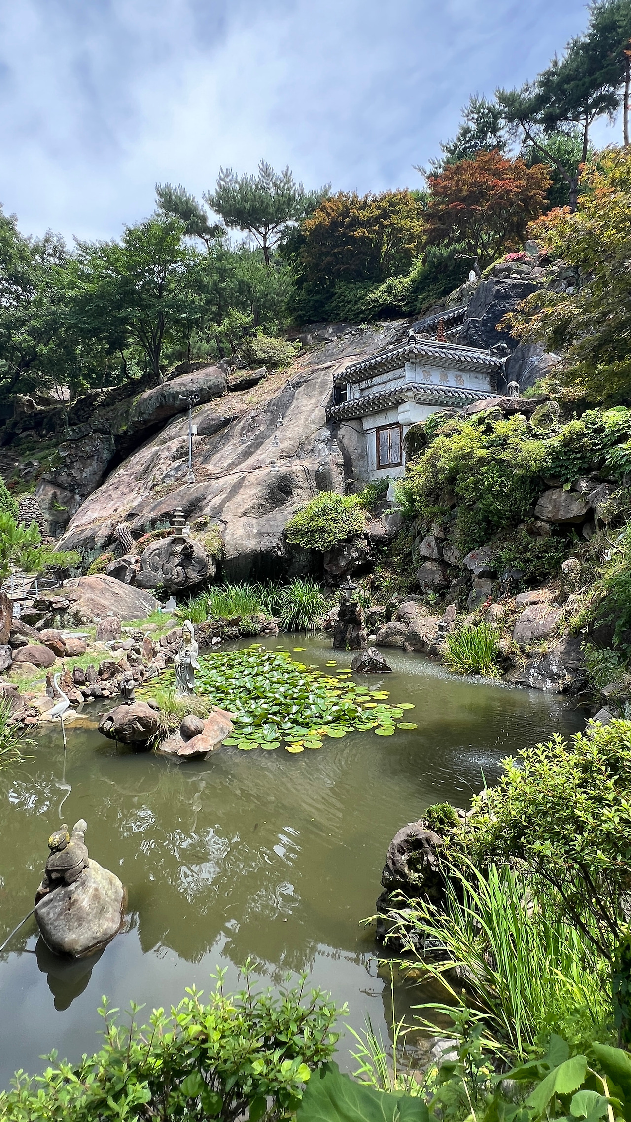 석굴법당을 나오고 나니 바깥 세상이 더 환하고 초록으로 보였다. 정말 잘 꾸며진 연못과 초여름에 피어나는 꽃들이 어우러져 마치 사찰이 아니라 멋진 정원에 있는 듯 느껴진다. 마냥 한가로이 머물고 싶은 풍경이다.