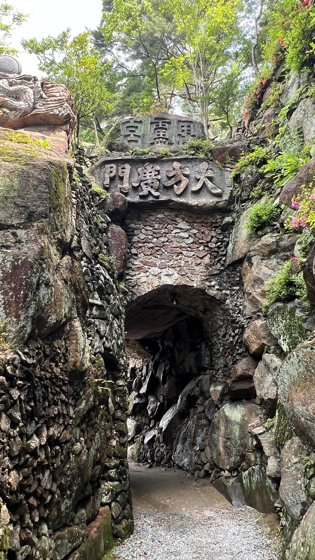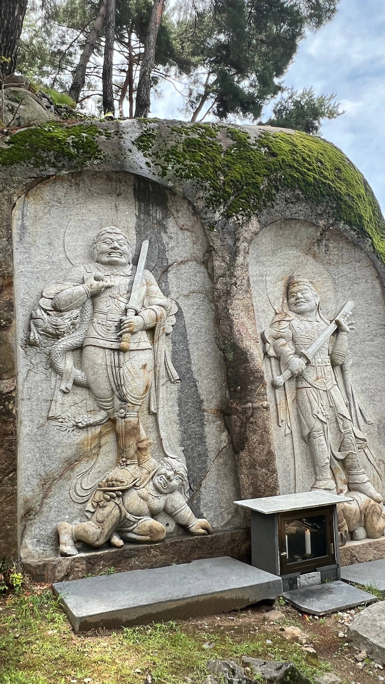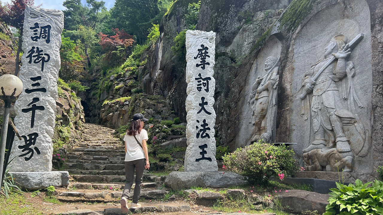 사찰 입구에 불교 진리의 세계로 들어간다는 대방광문이 있고 바위에 조각된 사천왕 상을 지나 도량 안으로 들어서게 되어 있다. 다른 사찰들은 사천왕상이 나무로 되어 있는데 이곳은 바위 암반에 조각되어 있어 더 강하고 엄숙한 분위기가 느껴진다.
