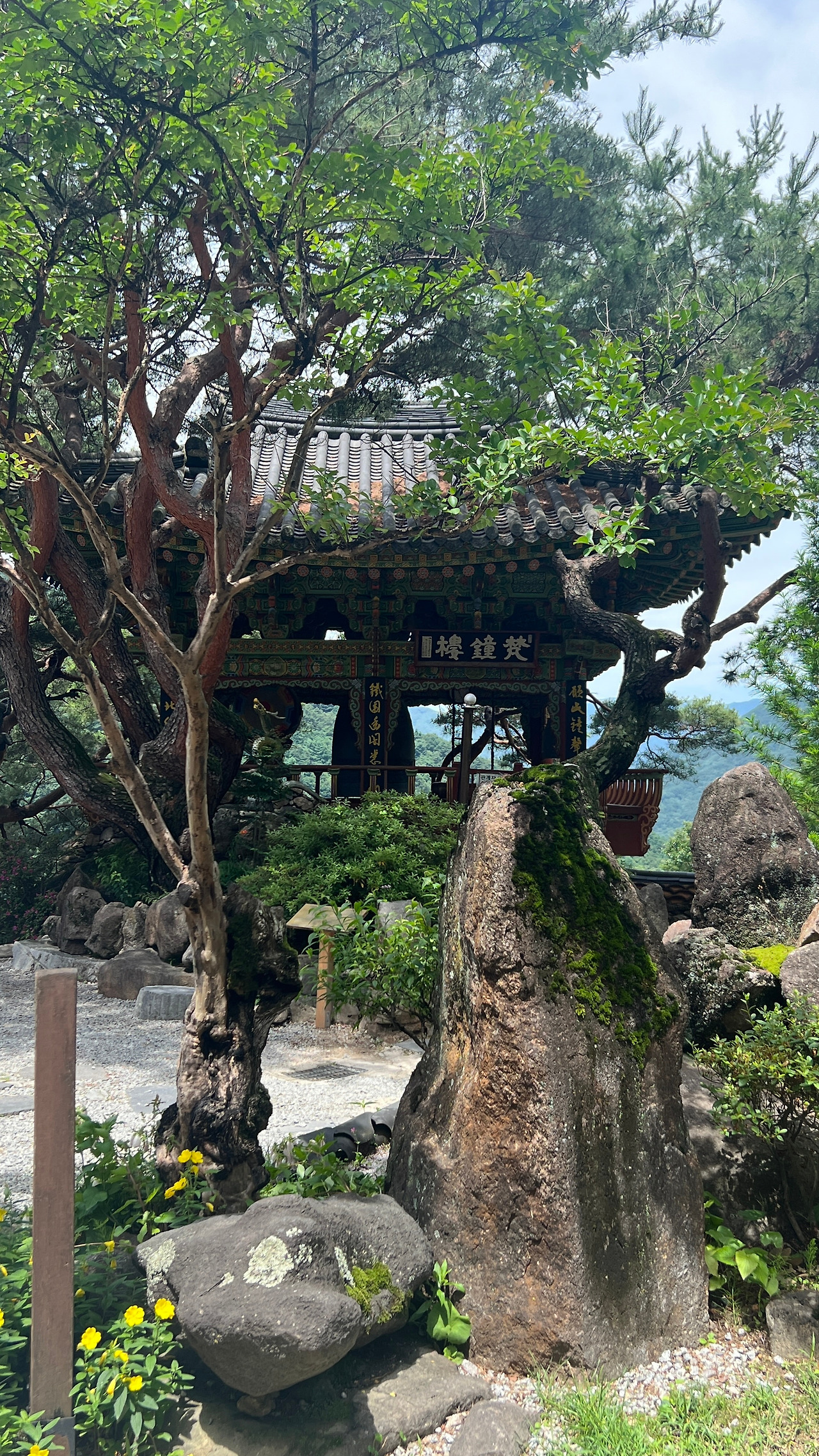 서암정사의 종루는 칠선계곡을 바라보는 경치 좋은 지점에 자리하며 개방형 누각 구조로 사방이 트여 있어 사찰 경내와 계곡 풍광을 두루 조망할 수 있다. 자연과의 어울림이 정말 좋다. 서암정사 전망 맛집이라고 할 수 있는 곳.