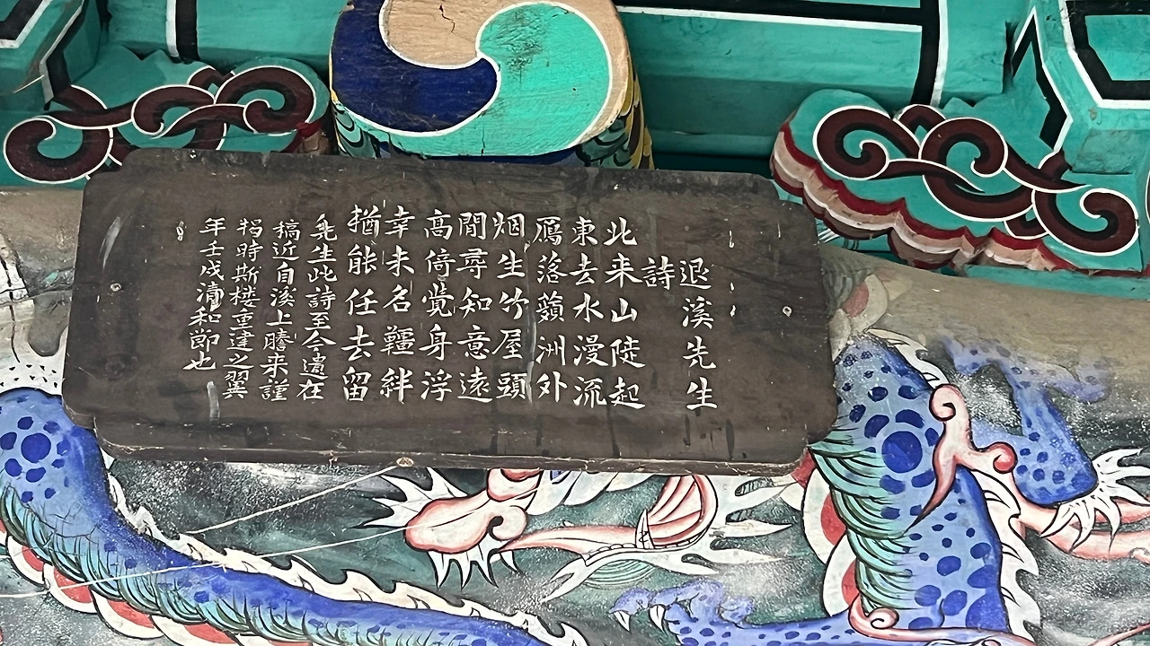 조선시대로 오며 이 누각을 많은 선비들이 찾았으며 함벽루의 경치나 풍류에 대한 시구 또는 찬사 등이 글귀 등을 남겼다고 전해진다. 그래서 누각에 올라서면 황강의 모습보다도 먼저 누각 내부에 빼곡히 걸린 글귀들이 눈에 들어왔다. 모두 다 한문이라 내용을 알기 어려우나 AI의 도움으로 해석을 해보니 이곳의 경치를 찬사하는 글들이었다. 특히 퇴계 이황의 글이 그랬고 남명 조식은 오언절구의 시를 남겼는데 풍요나 무념(無念)의 경지, 자연 속에서 초연해짐 등을 주제로 한 글이다. 특히나 남명 조식 선생의 글은 글씨체가 특이하고 아름다워 다른 글들 속에서도 눈에 확 띄었다. 나만의 생각일 수도..... 저런 글씨체 배워보고 싶다는 생각이 들기도 했다.