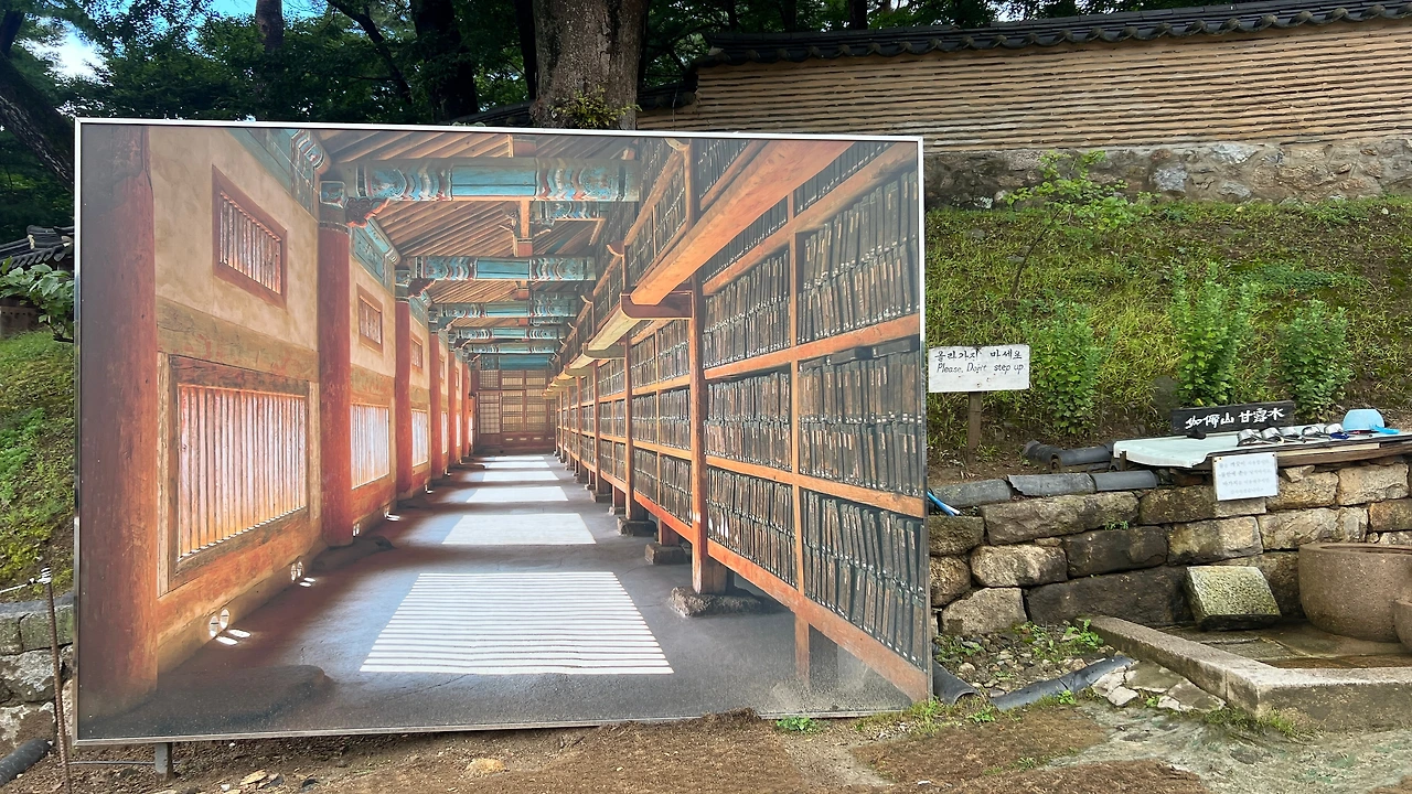 하지만 삼엄한 경비아래 팔만대장경이 있는 전각 주변으로 안전띠가 설치되어 가까이서 보기가 힘든 상태였다. 나무 창살 너머로 간신히 볼 수 있는 정도.