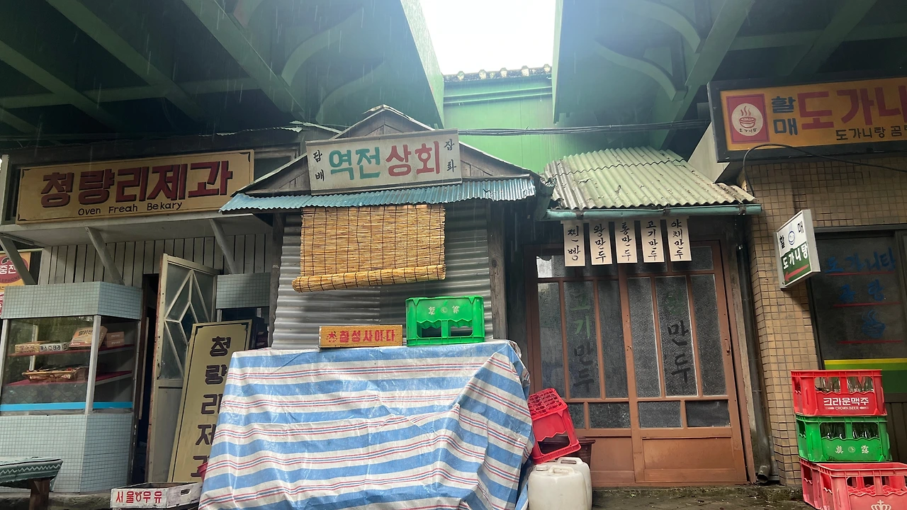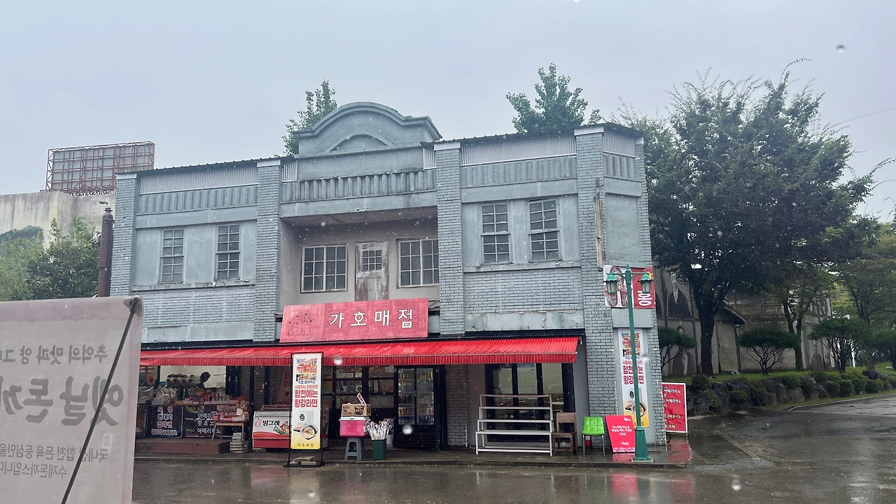 잔뜩 흐렸던 하늘에서 폭우가 쏟아졌더니 이상하게 더욱더 그 옛날 거리가 실감나게 느껴진다. 진짜 매점에서 누가 당장에라도 나올 것만 같았다. 지나가던 사람이 알려준 정보에 의하며 송혜교와 공유가 와서 뭔가를 찍는다고 한다. 그런데 아마도 오늘은 비가 와서 촬영이 취소되지 않았을까...라는 확실치 않은 정보를 주었다.