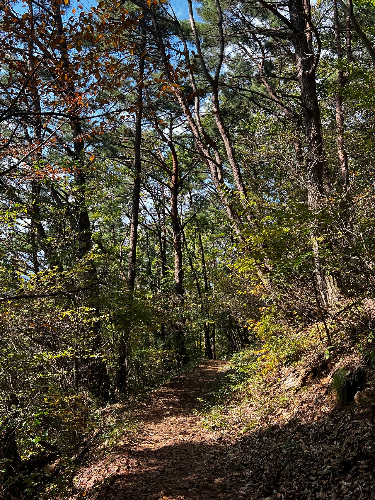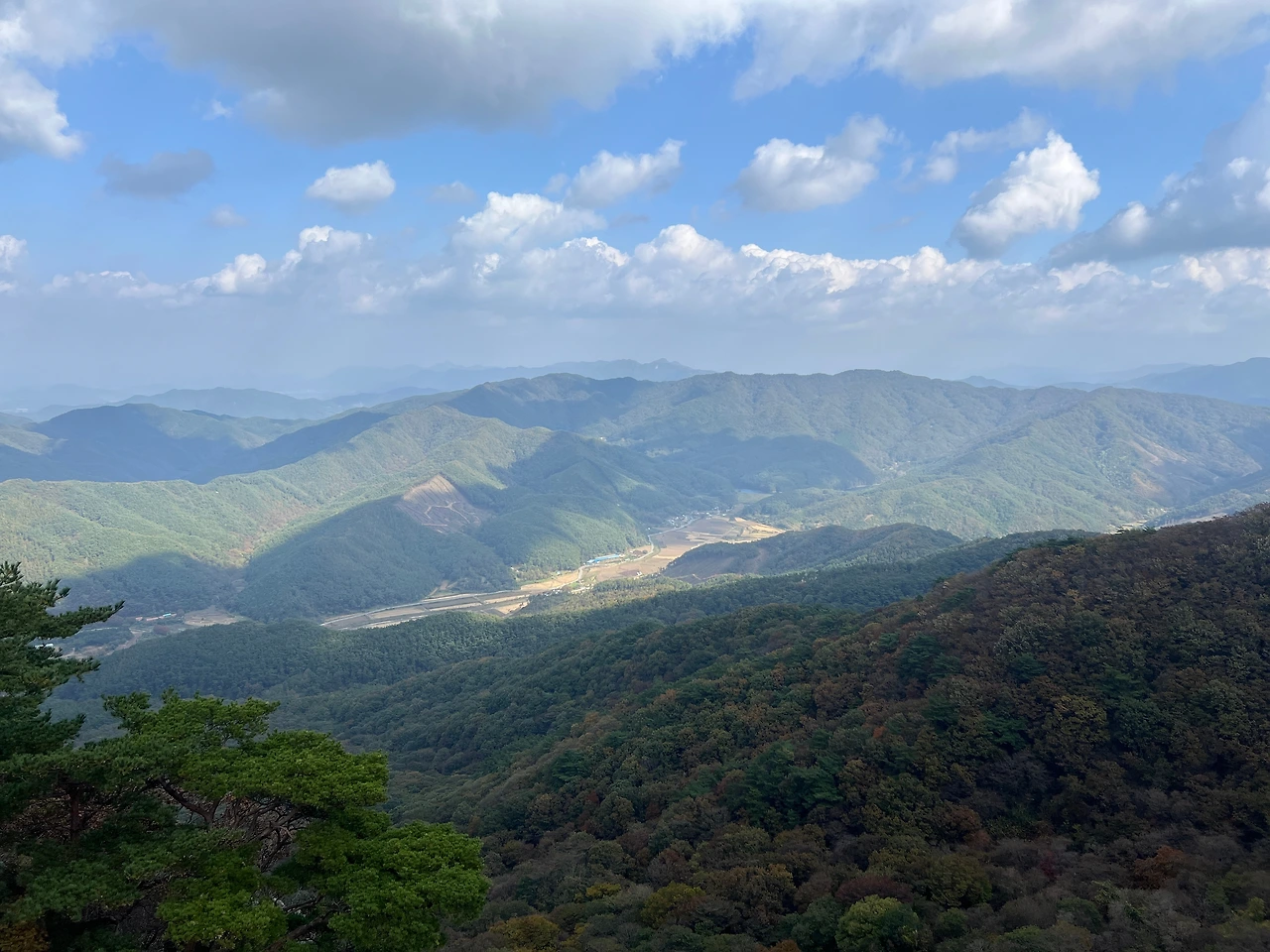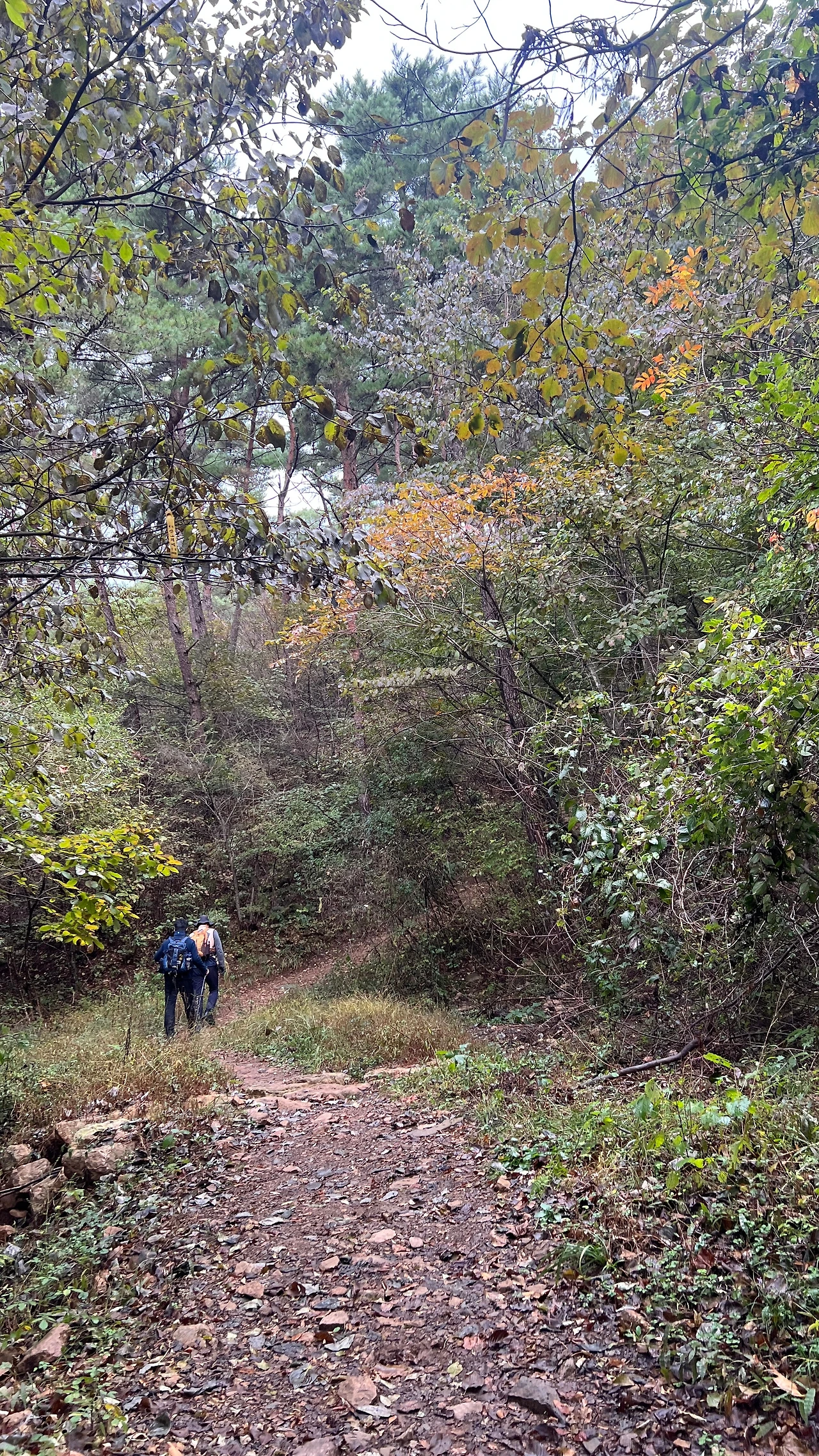 거의 하늘다리에 가까이 올 무렵 마치 맛배기처럼 전망이 탁트인 공간이 나왔다. 우와~~~! 지옥을 빠져나온 느낌^^ 사방이 탁 트여서 가슴이 뻥 뚫리는 듯하다. 가을이 깊어 공기는 또 어찌나 청량하고 달콤한지~~~다들 이래서 산에 오나보다.