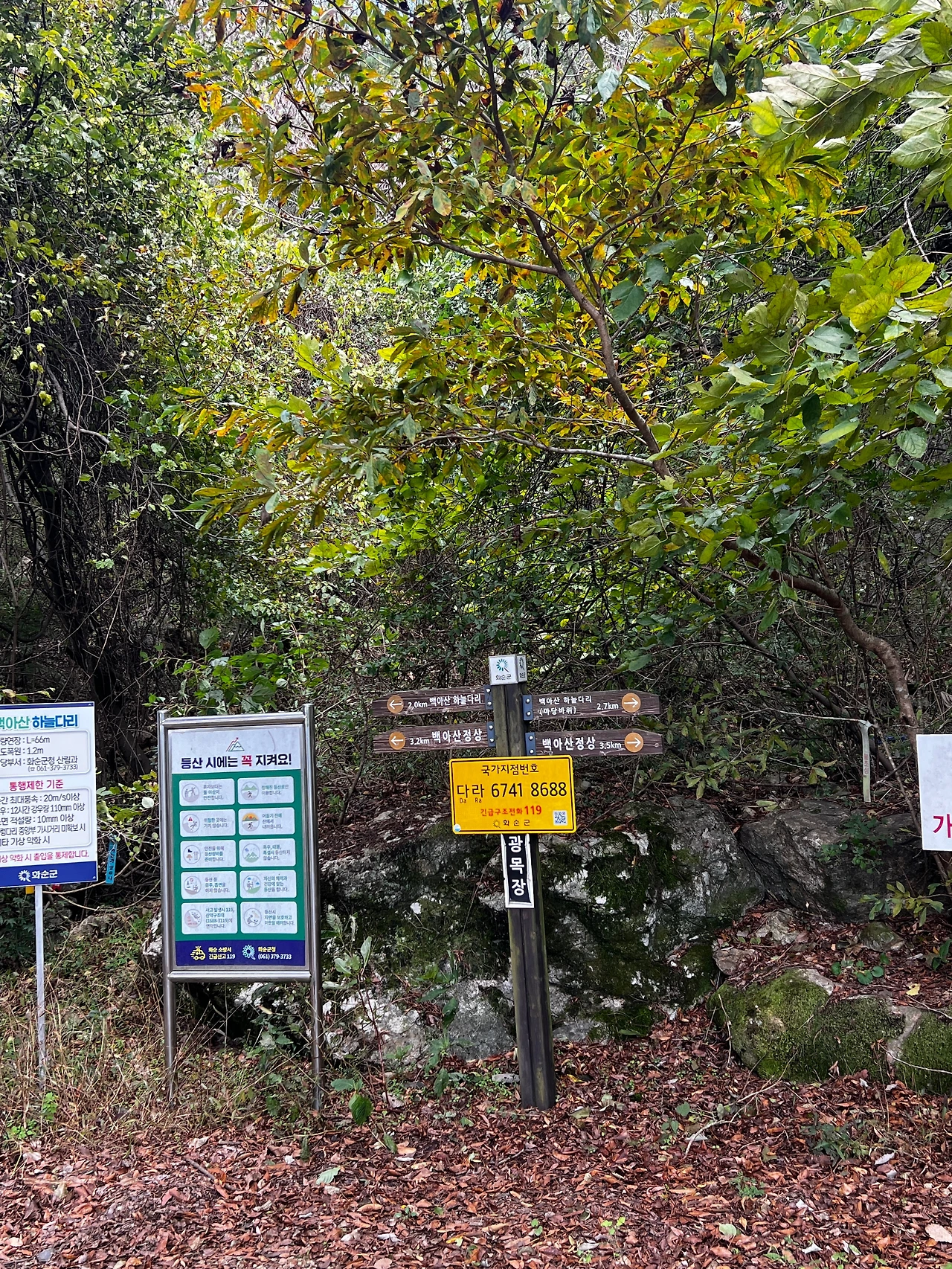 등산로 들머리를 찾으려면 아예 백아카페로 간다고 생각하면 쉽다. 백아카페 앞을 지나면 곧 들머리가 나온다. 정상등반 인증을 하면 음료가 10퍼센트 할인이라는 문구가 재밌다. 자 그럼 출발해볼까.