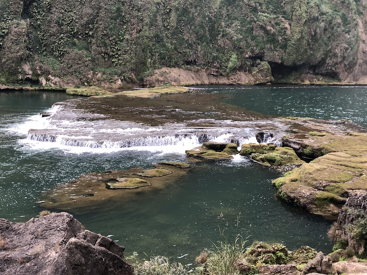 황과수 폭포 입장권을 손에 쥐고 일단 두파당 폭포로 향했다. 은련추담 폭포라고도 하는데 은련추담은 은목걸이를 의미한다고 한다. 폭포의 모습이 은목걸이 같다고 해서 붙여진 이름인듯하다. 처음 본 순간 우와~~! 여태까지 보지 못했던 특이한 광경이다. 사실 눈 앞에서 내려 쏟아지는 폭포의 모습이 진짜로 '가짜' 같았다. 진짜 폭포인가? 싶을정도로 가짜같은 진짜. 폭포의 물을 받치는 바위가 매끌하고도 동그랗게 패여 있어서 이곳을 지나는 물길이 정말 요리조리 흐리다보니 은목걸이 같은 특이한 모양을 만들어 낸 듯 하다. 그리고 다른 폭포 보다도 더더더 하얗게 쏟아진다. 진짜 하얗게 뒤덮여 쏟아진다.