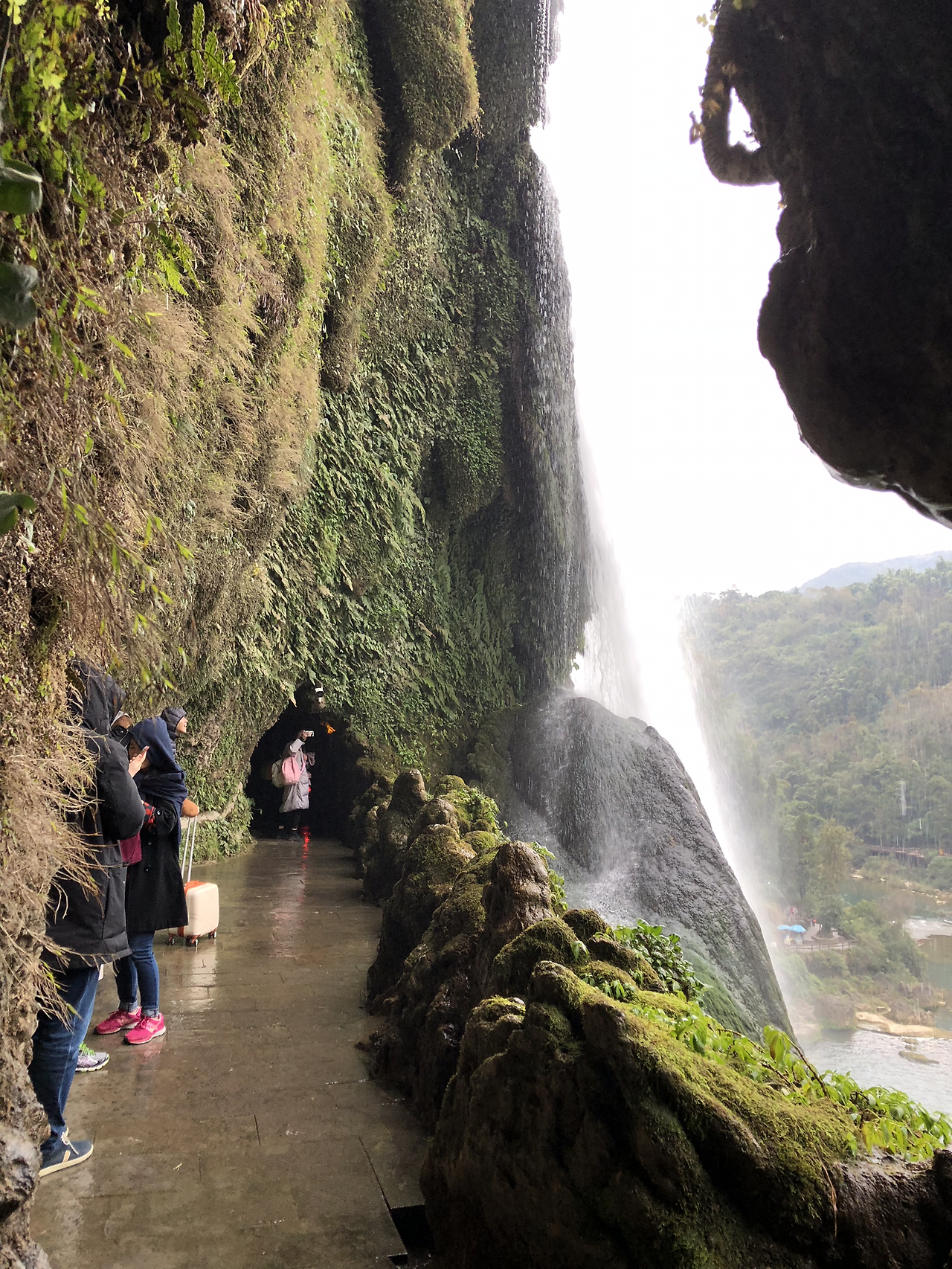 황과수 폭포가 세상의 모든 다른 폭포와 다른점은 폭포 뒤에 동굴이 형성되어 있어 폭포의 떨어지는 물을 뒤에서 감상할 수 있다는 점이다. 수렴동이라 불리우는 동굴에 들어가본다. 이 동굴은 여름에는사람들이 너무 많아서 들어가는데 어마어마한 시간이 걸린단다. 또 비가 많이 내릴 때는 폐쇄된다고 하니 운이 나쁘면 못들어갈 수도 있다. 겨울에는 무난하게 전혀 기다리지 않고 입장 가능. 폭포의 떨어지는 물로 인해 바닥이 매우 미끄러웠다. 조심 또 조심해야 할듯. 우비가 있다면 입는 것이 좋다. 물이 여기 저기 튀어서 장난아니게 젖어버린다.