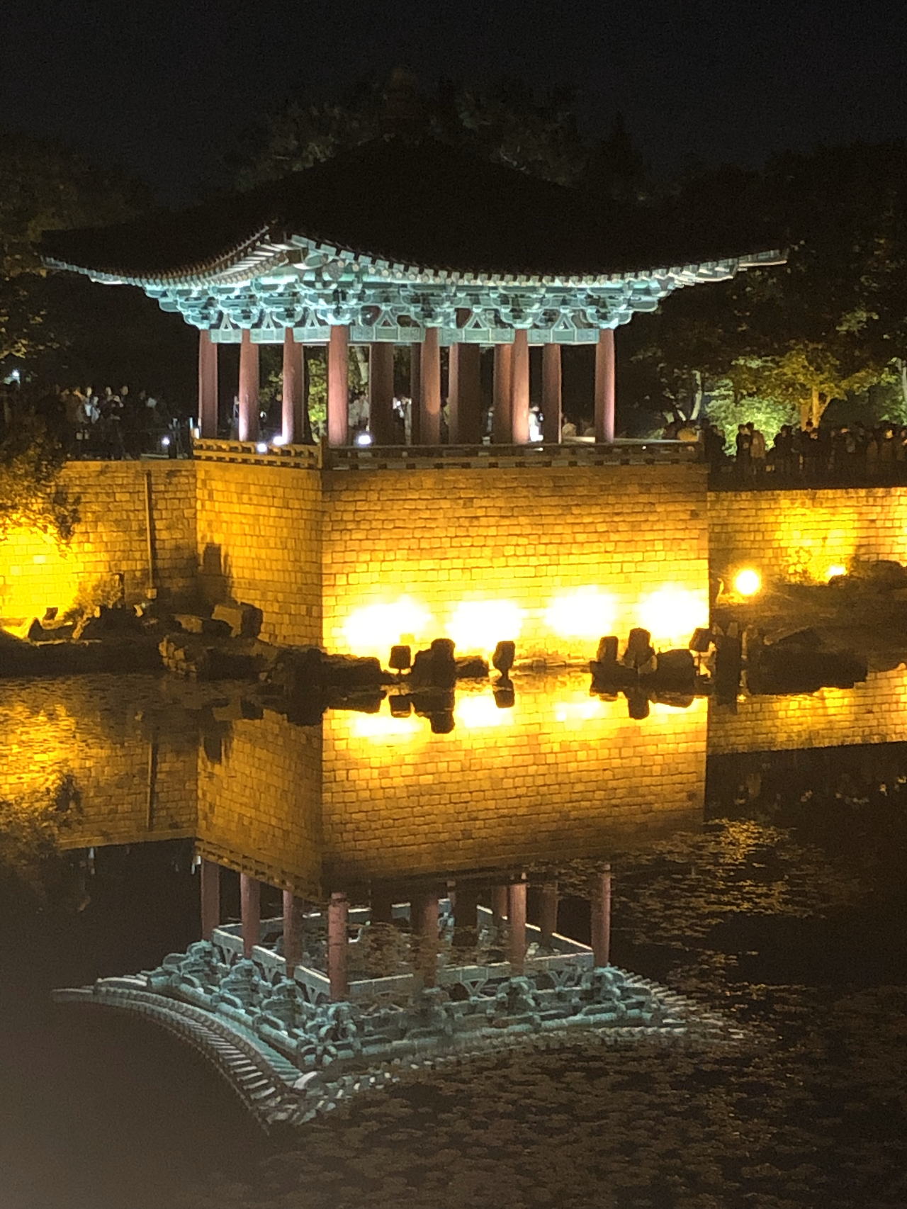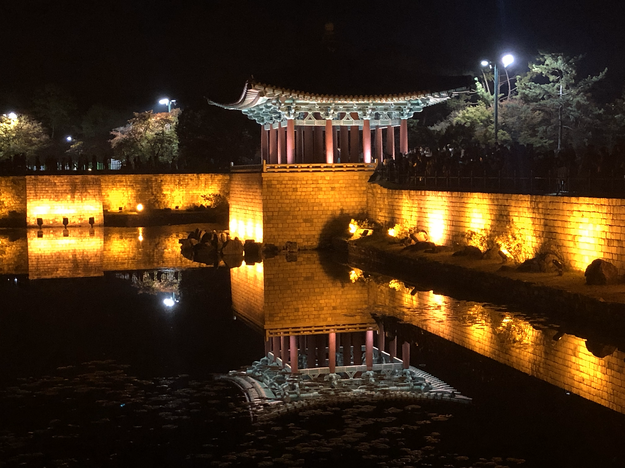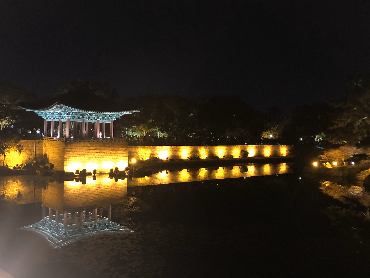 세상 어디에 이런 야경이 또 있을까 싶다. 새까만 하늘과 새까만 연못이 완벽한 대비를 이루며 그 안에 전각을 위아래로 담아버렸다. 그 밤에 만난 동궁의 모습은 고대 건축물로 늘 보아왔고 늘 예상해왔던 그 모습이 절대 아니었다. 연못을 만나서 아름다운 불빛을 입어서 판타스틱하게 다시 태어난 것. 아 이래서 사람들이 이렇게 많았구나. 시간이 지나도 줄어들지 않는 사람들로 인해 오롯이 혼자서 멋진 사진을 찍기가 쉽지 않았지만 그래도 어떻게든 멋진 사진을 건져보리라.